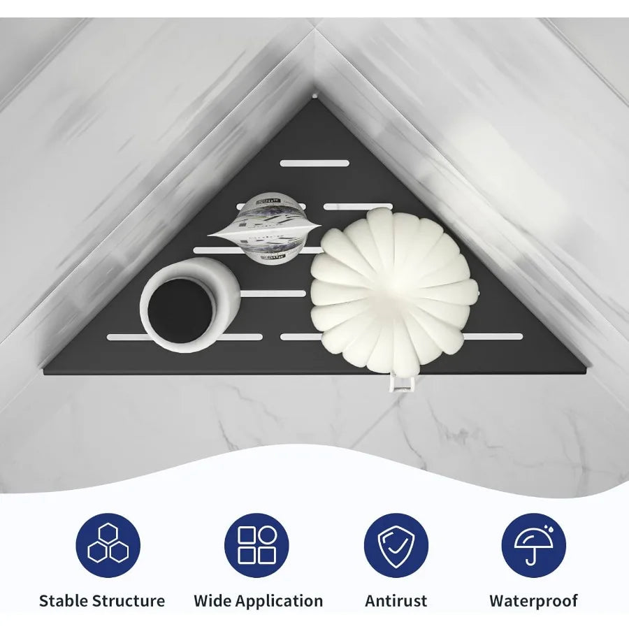 [Two Installation Options] Our corner shelf features a unique design on both sides. You can choose to install it with one side facing up. Side A provides more space for toiletries and better drainage, while Side B provides effective anti-slip properties.
