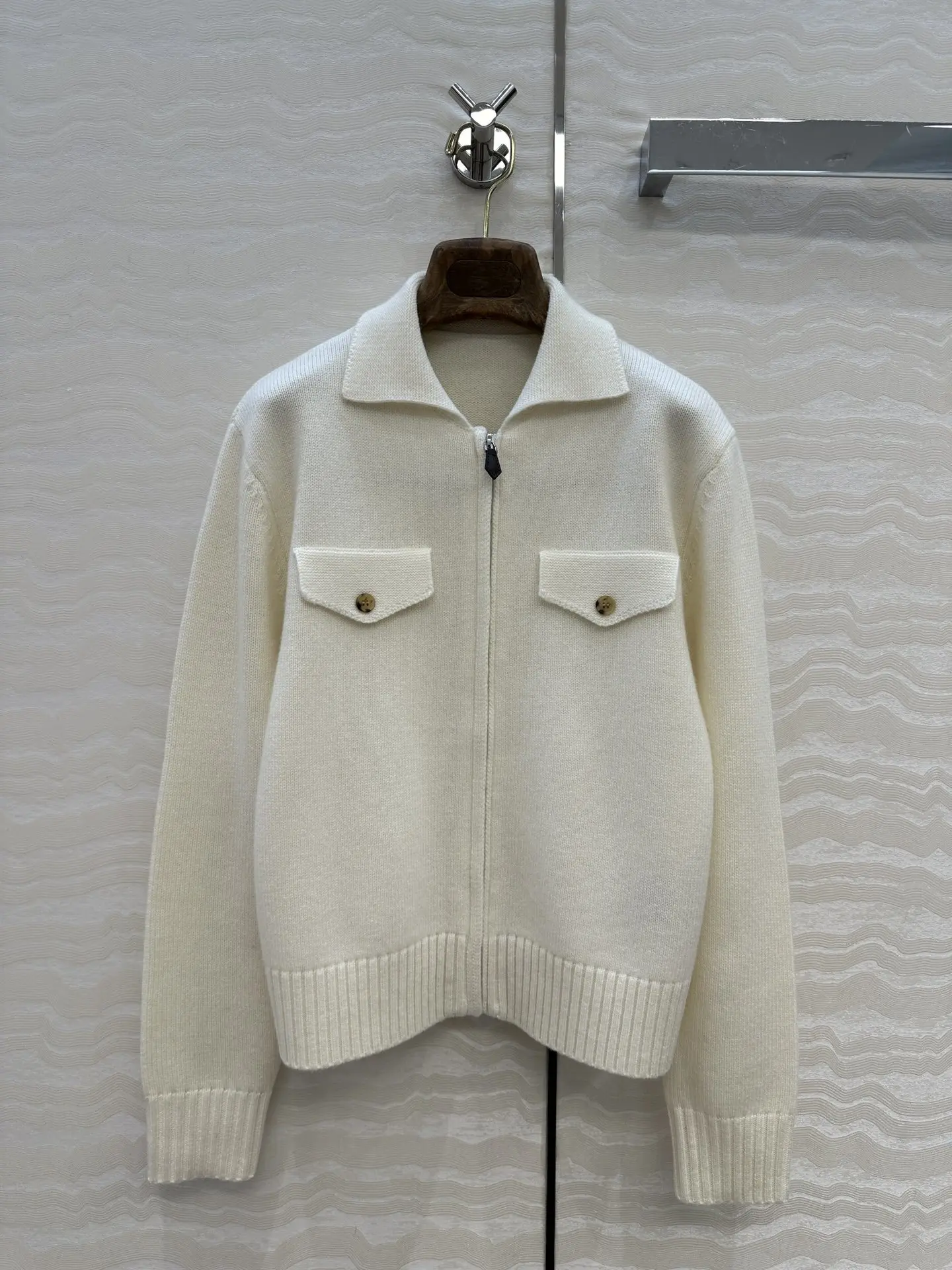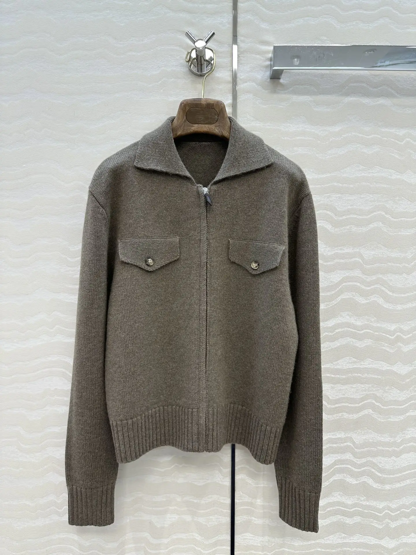 2025 new fashionable versatile lapel zipper knitted cardigan women autumn and winter loose slim sweater jacket tops women