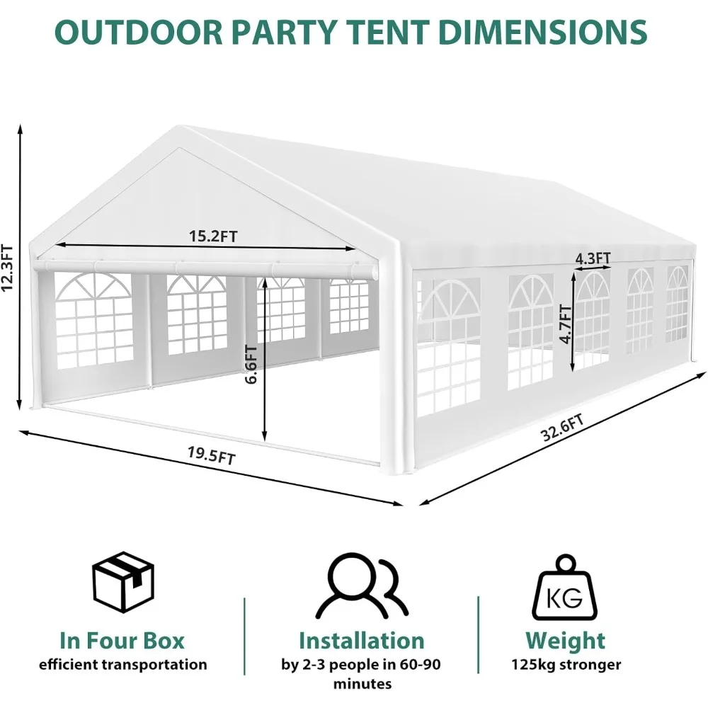 20X32 FT Party Tent Heavy Duty, Outdoor Large Wedding Tent Event Shelter with Carry Bags & Removable Sidewalls, Outdoor Canopy