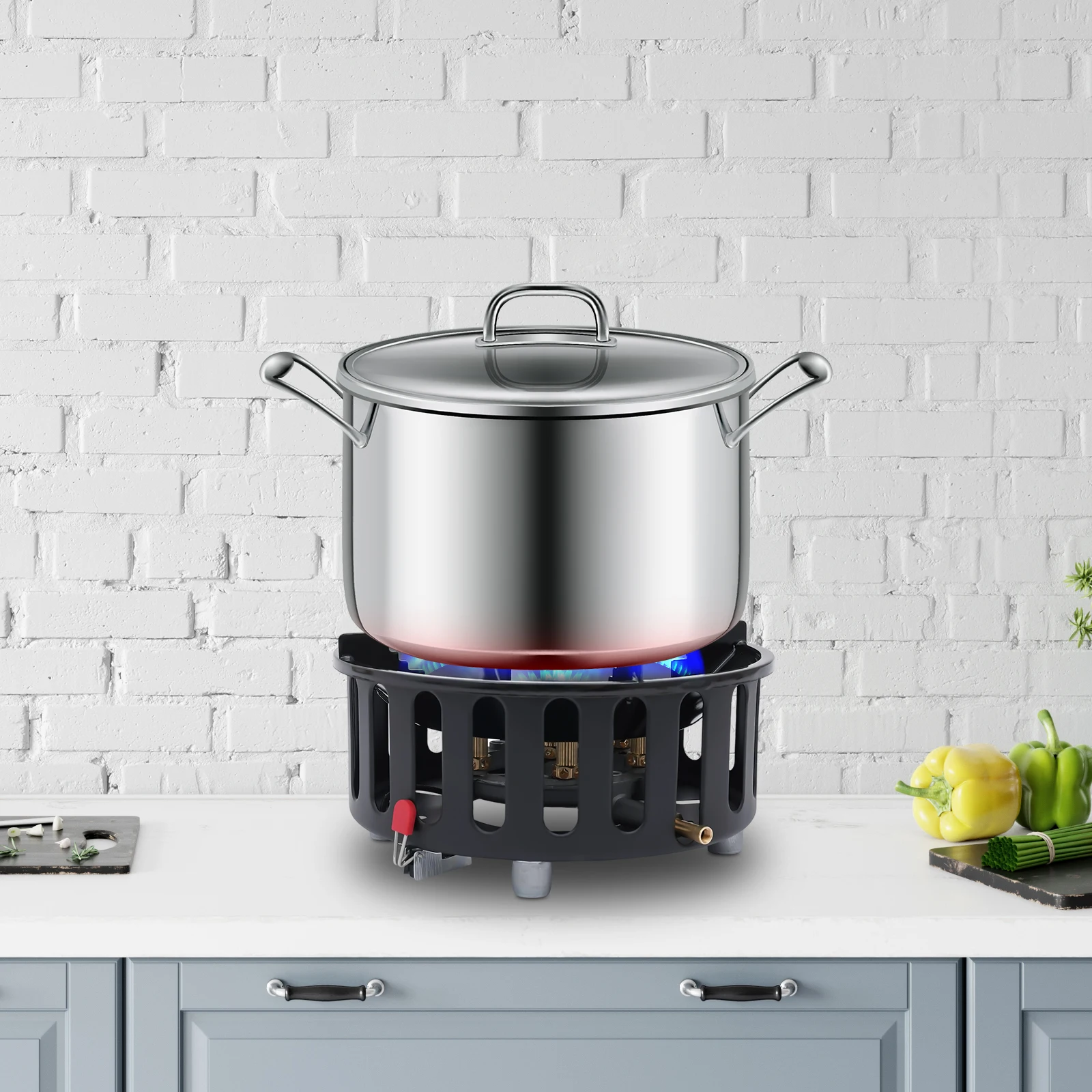 It is compatible with 8.46-9.06-inch pots and pans and a variety of gas canisters and can be used for frying, sautéing, deep-frying, steaming, and boiling, suitable for travel, camping, picnic, party, and so on.