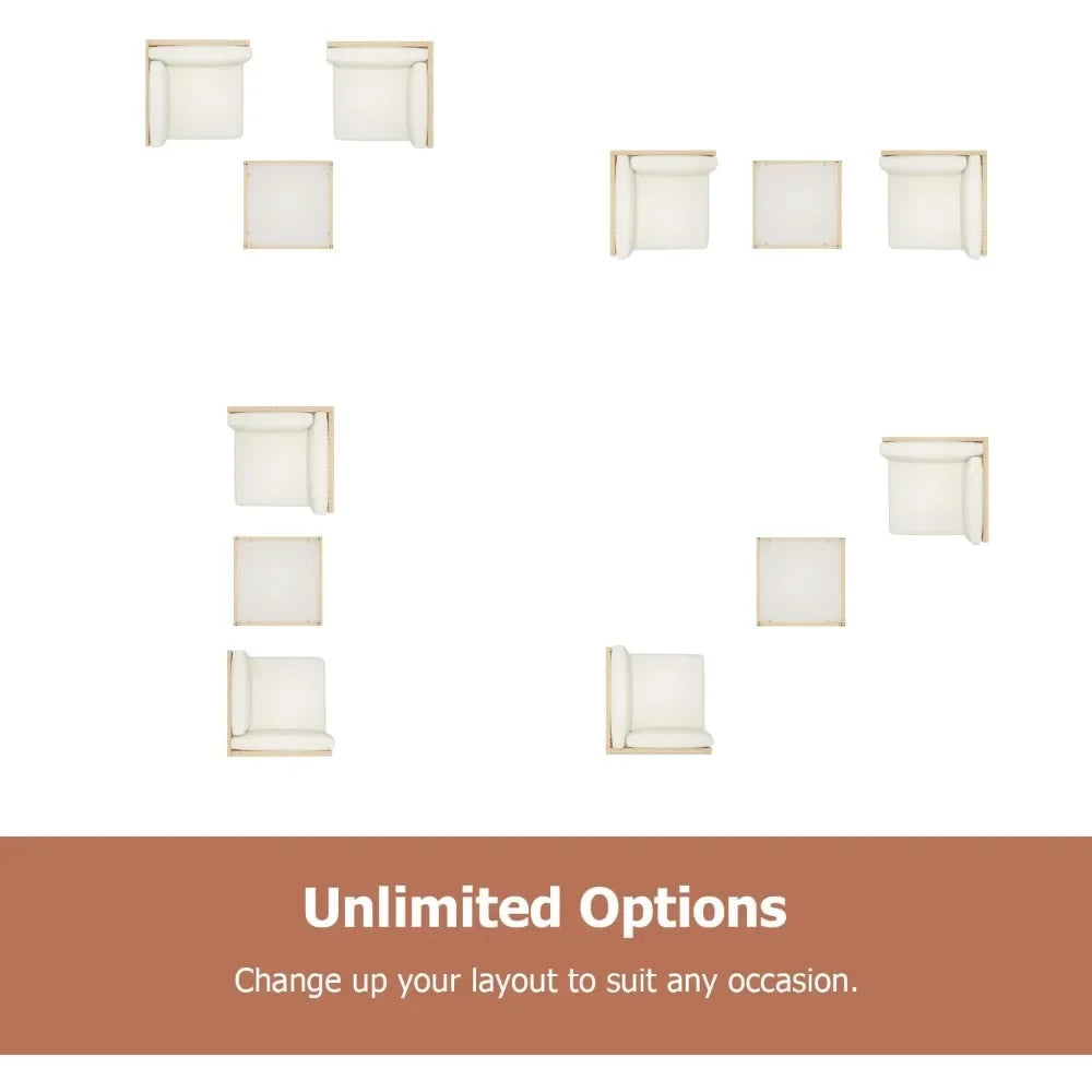 - Personalized Outdoor Layout:Enjoy modular flexibility with our outdoor sectional, including 2 corner chairs, 4 armless chairs, and 1 glass-top coffee table. Easily customize layouts to suit any space, from cozy patios to large gardens. Adjustable feet ensure stability on uneven surfaces, while included connector clips keep the seats firmly together. Built for durability and comfort, each seat supports up to 350 lbs, offering a versatile and stable setup for all your outdoor gatherings