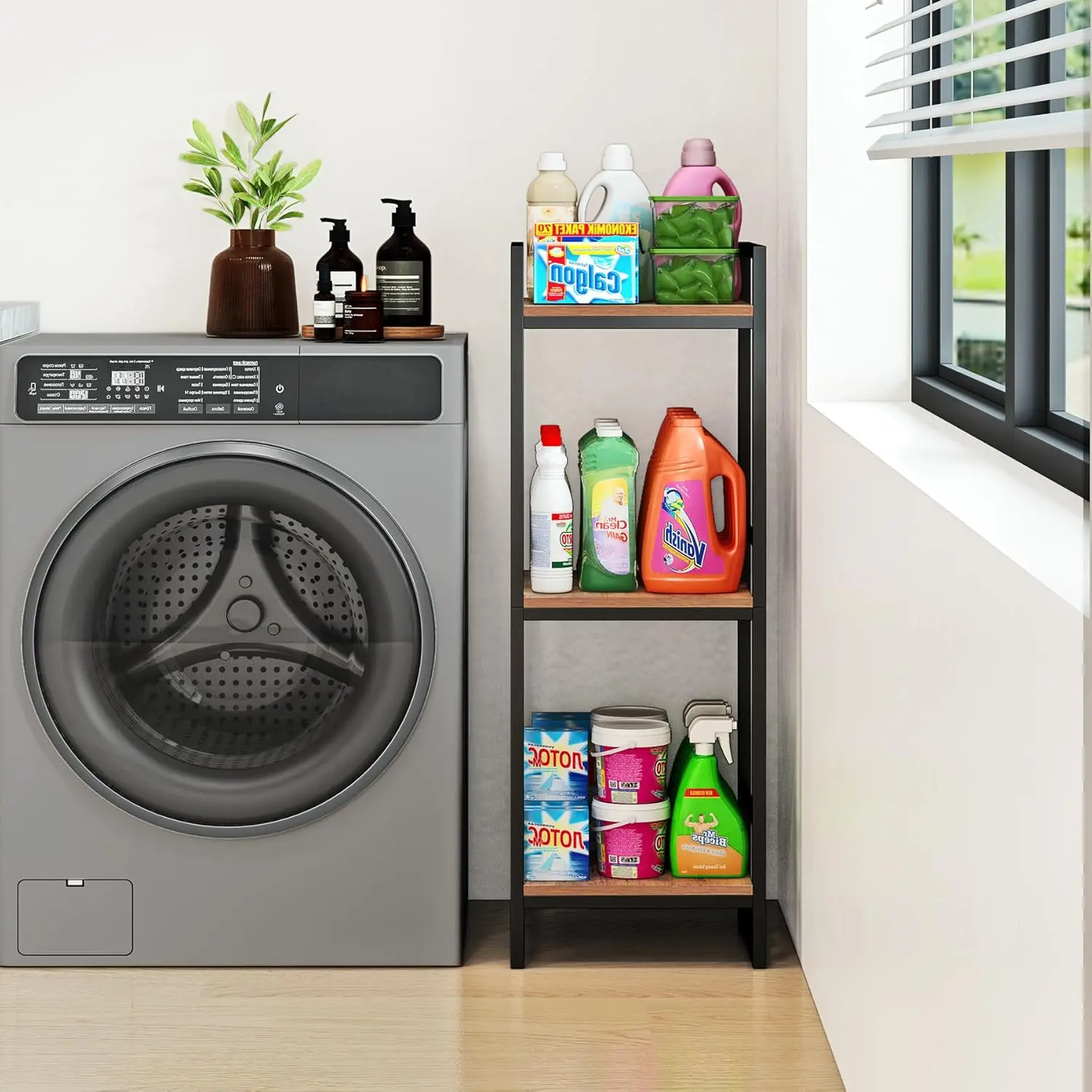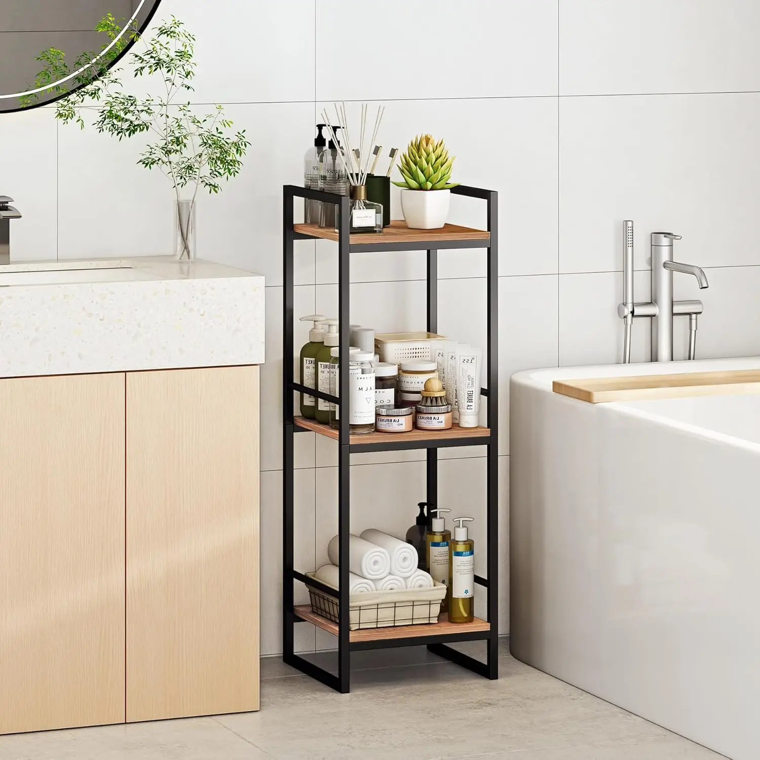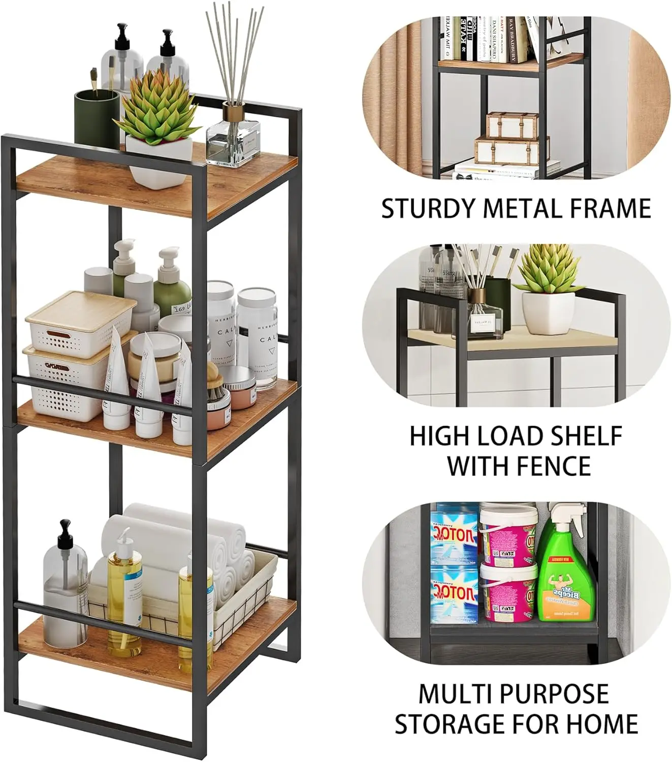 Transform your cluttered spaces into beautifully organized areas with our versatile 3-tier corner shelf! Crafted from heavy-duty steel and reinforced MDF boards, this storage solution offers an impressive 30lbs capacity per shelf—perfect for holding towels, toiletries, kitchen supplies, and decorative items without worry. Its rust-resistant coating ensures durability in humid environments like bathrooms and laundry rooms, so you can enjoy long-lasting use. Designed with a modern farmhouse style, the rustic brown finish seamlessly blends industrial metal with a warm wood-look, adding a touch of elegance to any room. Measuring 33.5 inches high and 11.8 inches wide, it fits snugly in tight corners next to toilets, tubs, or in entryways, maximizing your space without sacrificing style. Imagine waking up to a tidy bathroom or cooking in an organized kitchen—this shelf makes it effortless! Assembly is a breeze with tool-free setup; pre-drilled holes and included hardware let you put it together in under 15 minutes, no technical skills needed. Whether you're a busy parent looking to declutter the kids' bathroom, a home chef needing extra pantry storage, or someone who loves a cozy living room setup, this multi-functional organizer adapts to your lifestyle. Use it as a bedroom nightstand, kitchen pantry rack, or even a plant stand—the possibilities are endless. Why wait to create the organized home of your dreams? Add this must-have shelf to your cart today and experience the joy of a clutter-free space. It's not just a purchase; it's an investment in simplicity and style that you'll appreciate every day. Click 'Add to Cart' now and take the first step toward a more organized life!