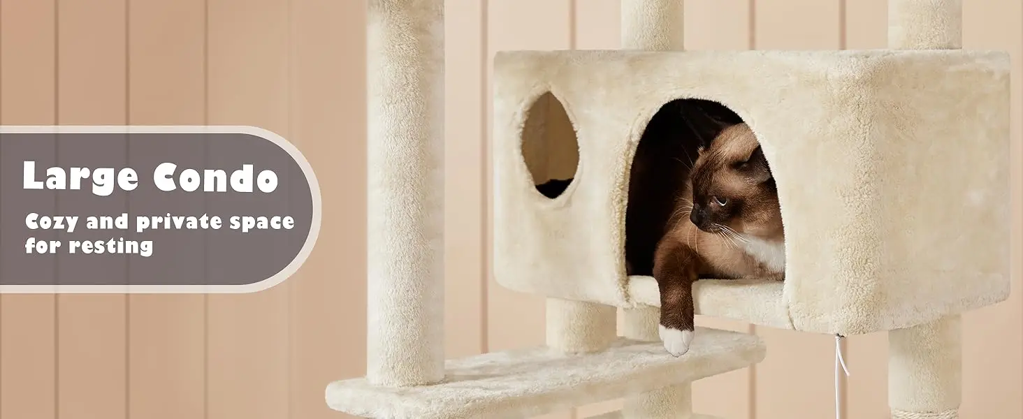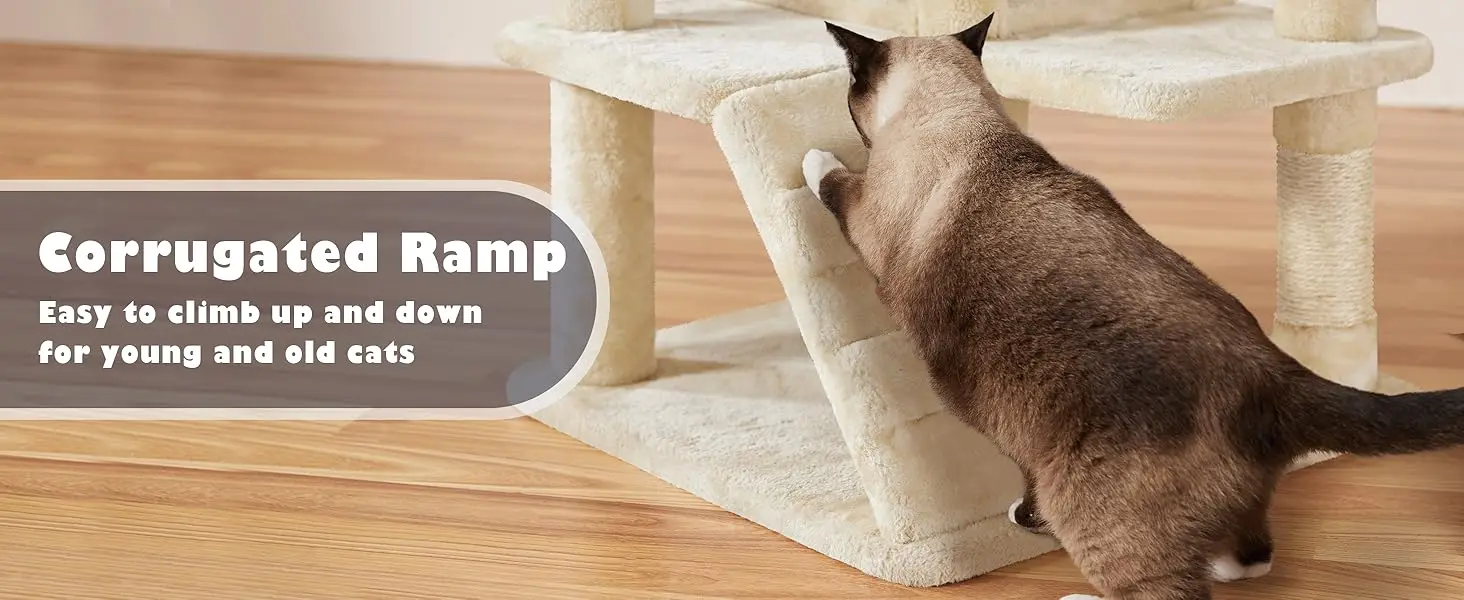 Built with a heavy-duty base for maximum stability, this cat tower ensures safety during climbing and jumping. Its stylish design blends seamlessly with any home décor, making it a functional and attractive addition to your living space.
