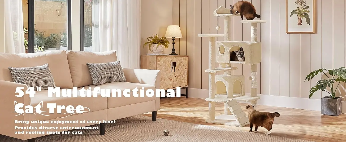 Perfect for one or multiple cats, this 54 Inch Cat Tree Tower combines durability, comfort, and entertainment—creating the ultimate indoor paradise for your pets.