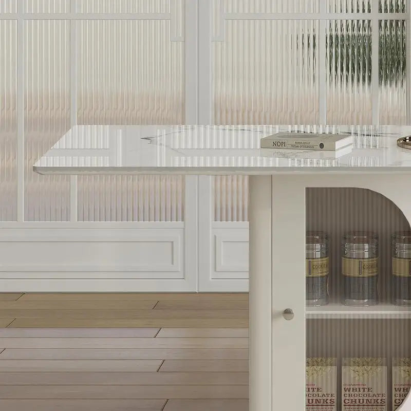 SMART STORAGE SOLUTION: The built-in side storage racks and transparent glass cabinets provide convenient space for storing essential items for meals.