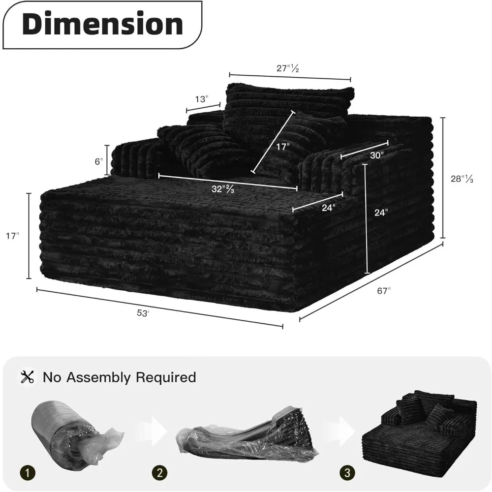 67" Oversized Chaise Lounge Sofa Chair Indoor, No Assembly Black Lounge Couch, Modern Corduroy Sleeper Couch Chair