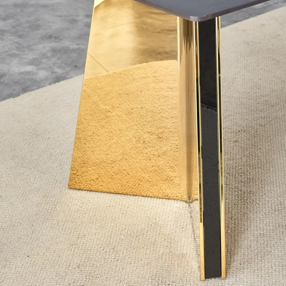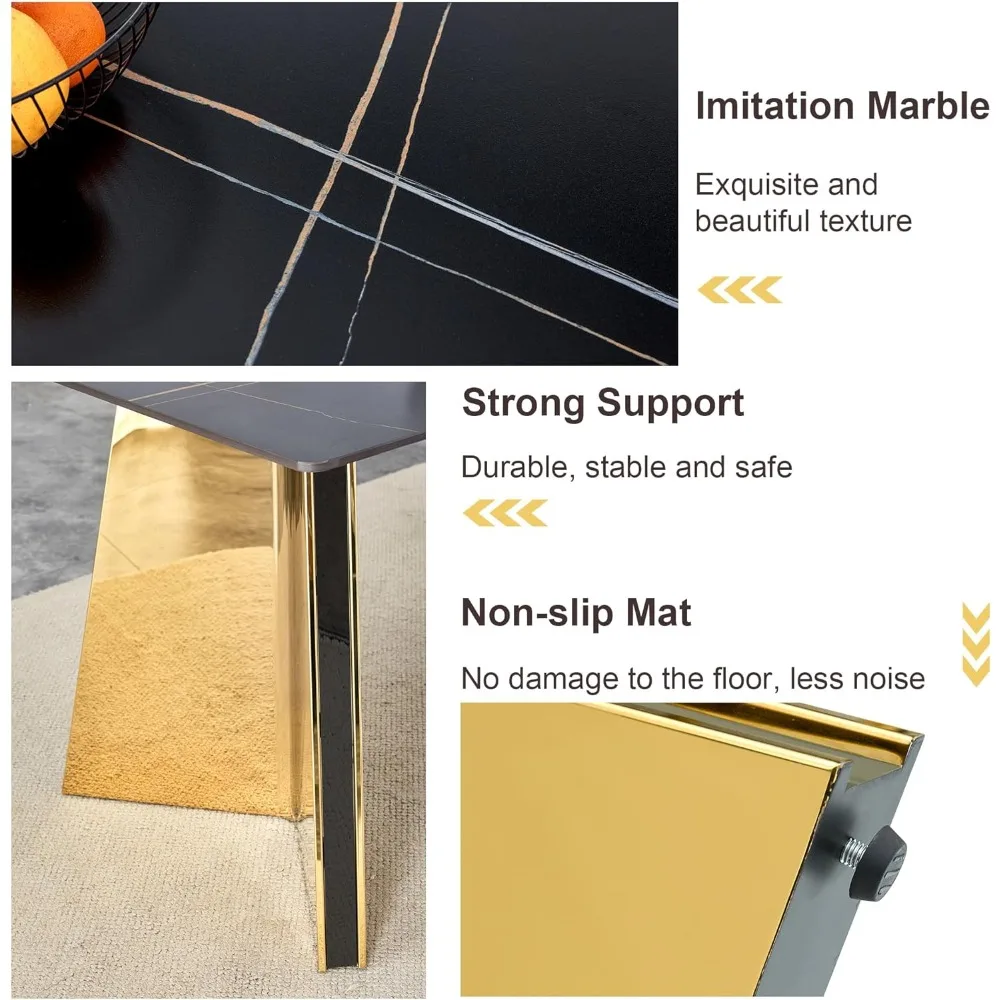 7 Pieces Dining Table Set,63" Marble Kitchen Room Table with 6 Black Chairs,Rectangle Sintered Stone Top with Gold Legs