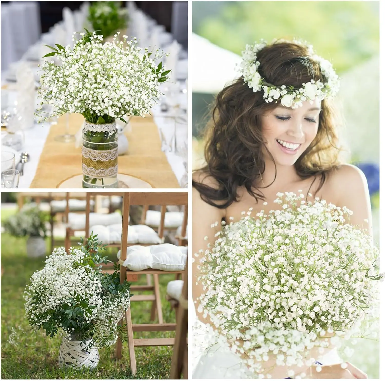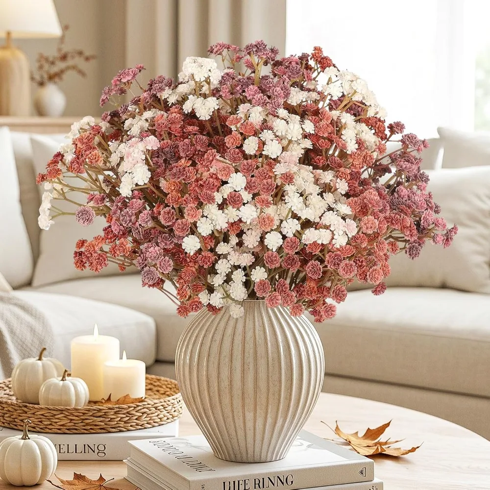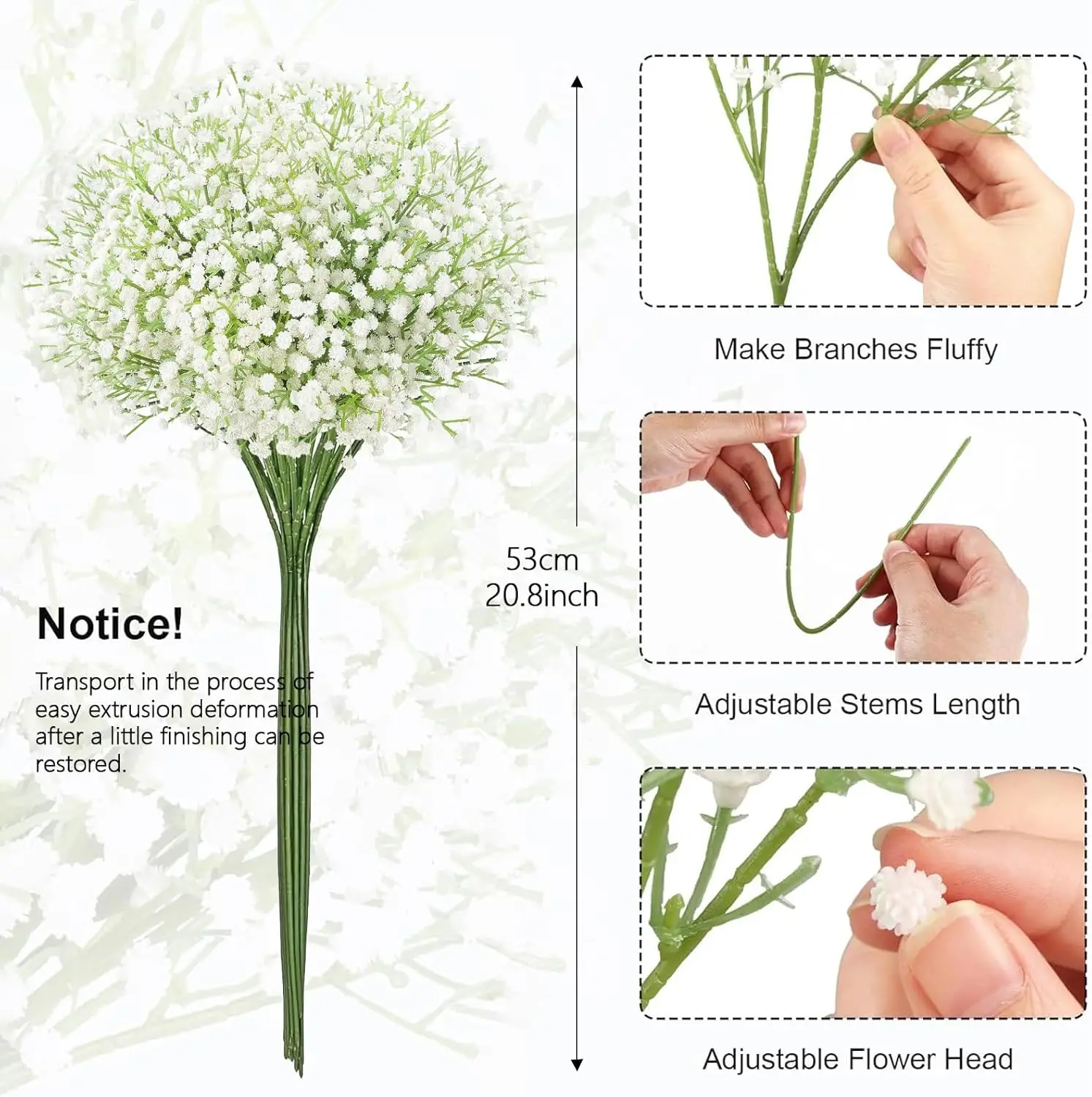 Baby Breath Flowers Fall Flowers Artificial Bulk, 10Pcs Fall Decor Fake Gypsophila Plants Bouquets Flowers Real Touch Faux
