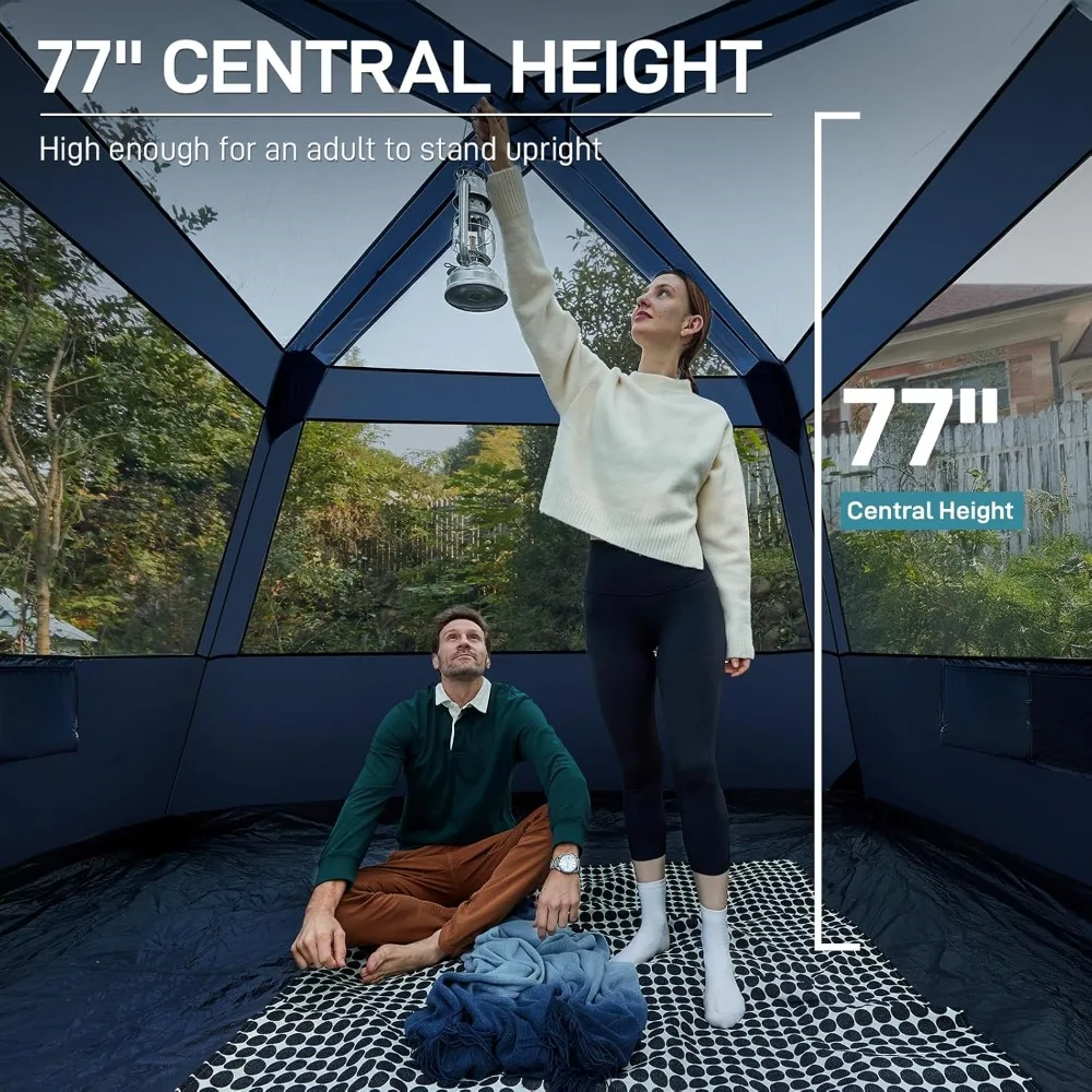 - 【ROOMY FAMILY TENT】9.75ft x 9ft with 77in Center Height, fit 6 sleeping bags,has enough space for 6 person. The family cabin tent provides spacious interior and foldable to a compact size for storage and carrying to camping, while the packed size is 8.7" x 8.7" x 48.8".
