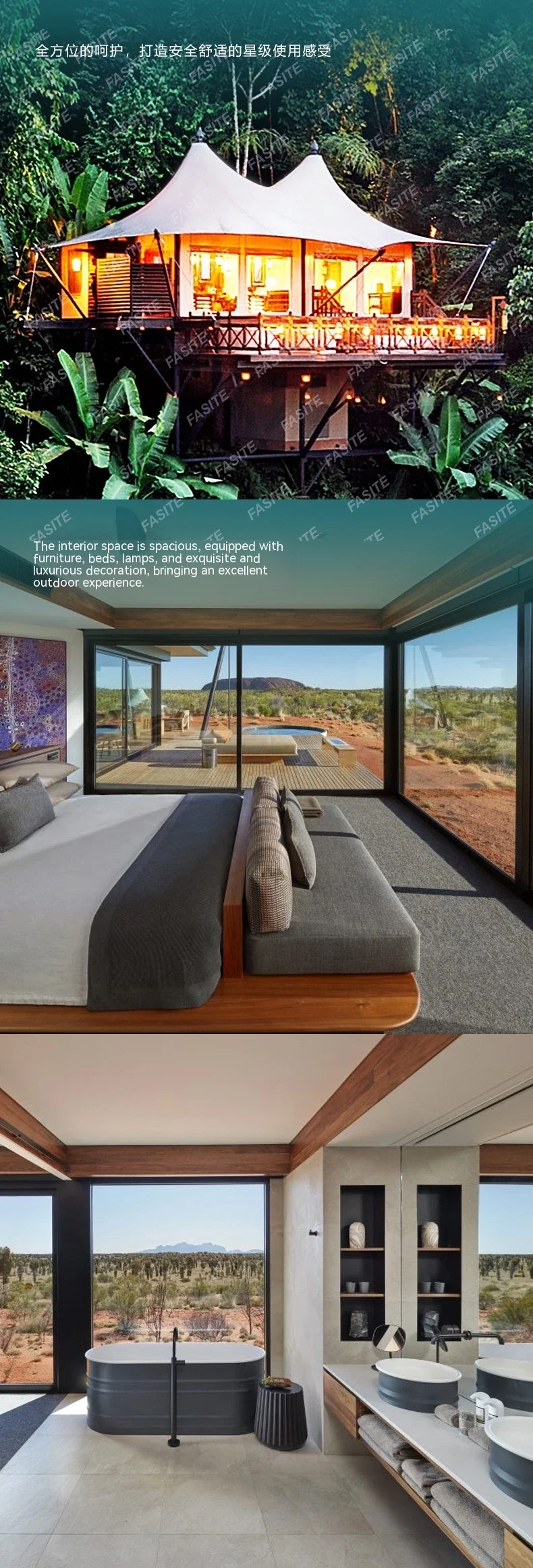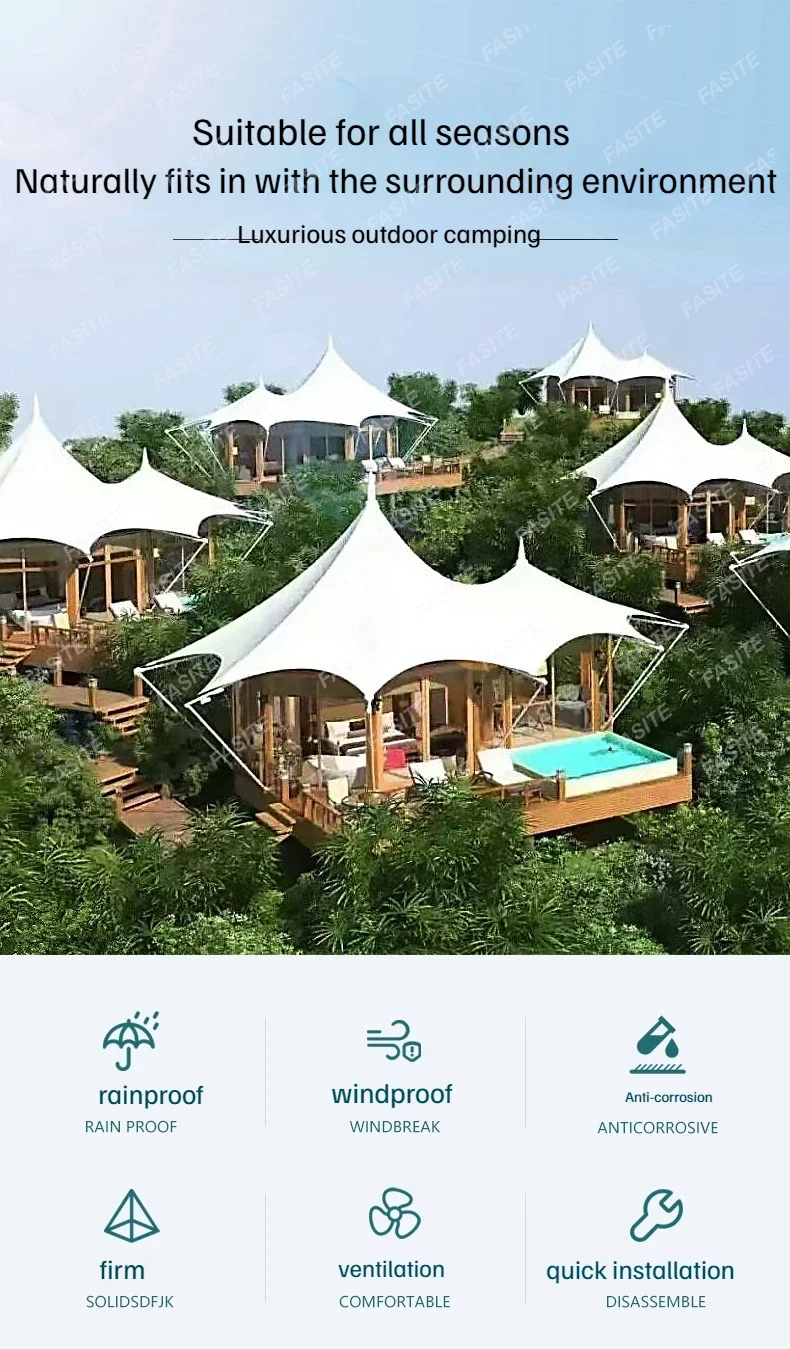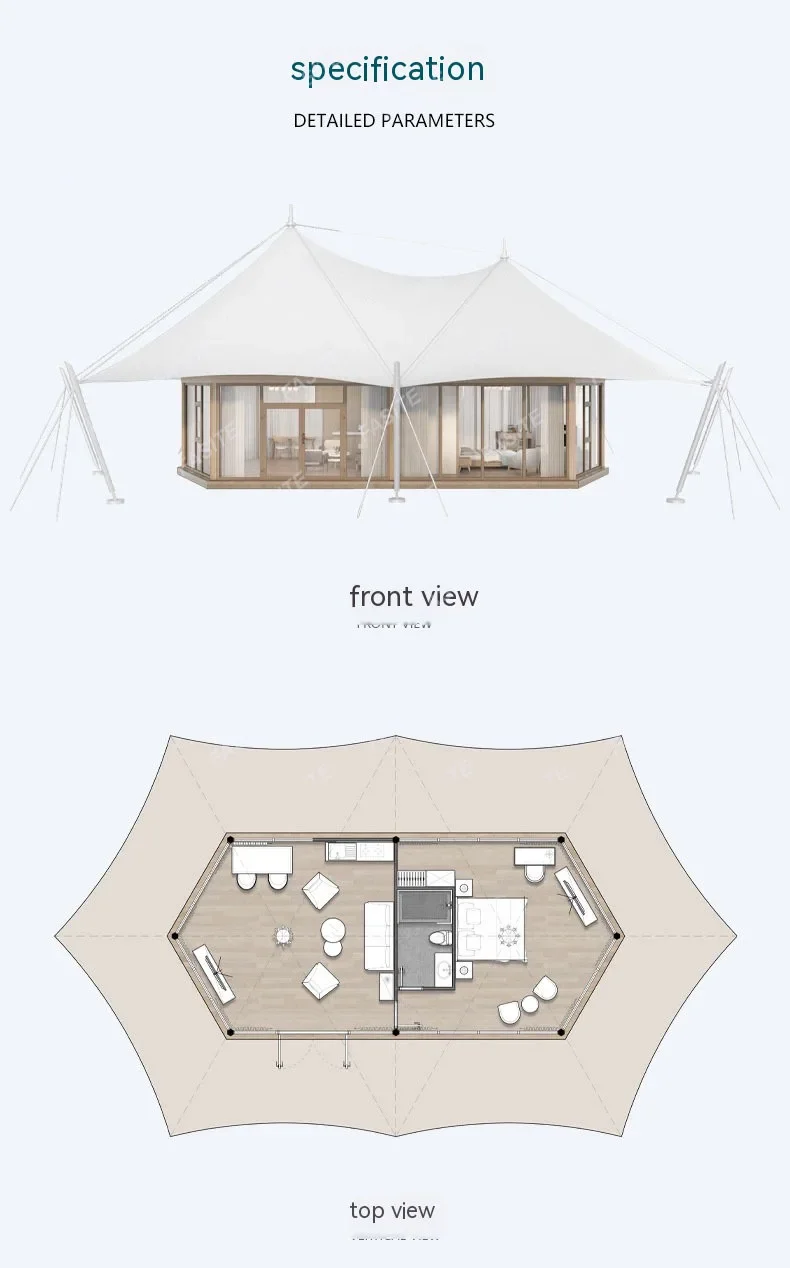 Camp Tensile Membrane Structure Sunshade And Warm Spire Wild Luxury Hotel Tent One Bedroom And One Living Room