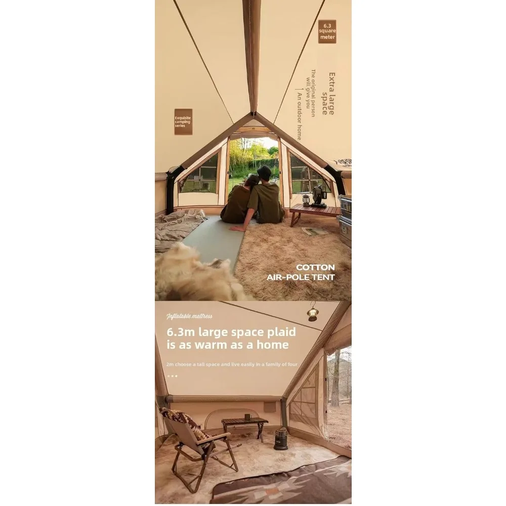 Capacity for 4-6 People, Outdoor Inflatable Camping Deluxe Tent 6.3 Flat Inflatable House Oxford Cloth Tent, Double Door Air Pum