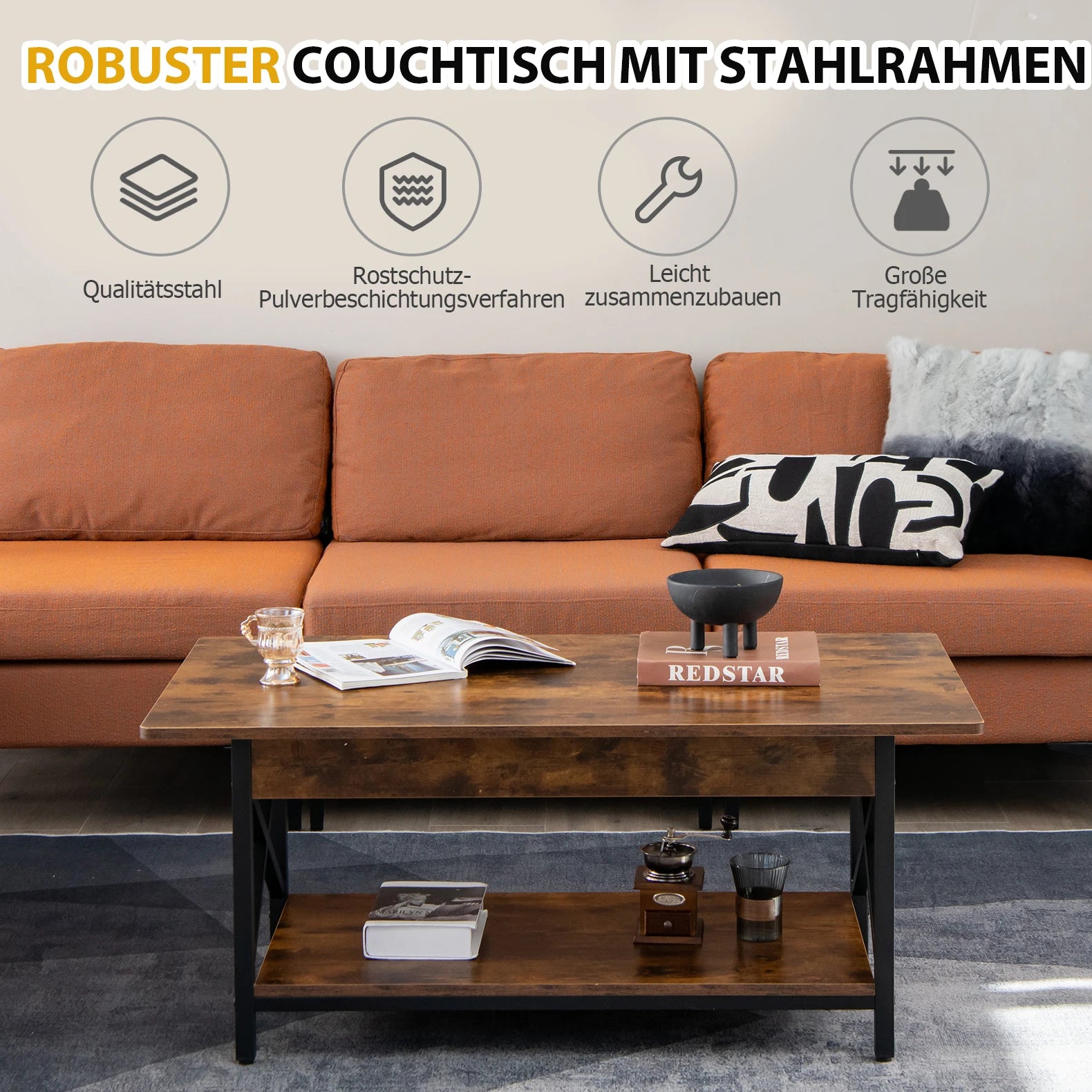 Coffee table coffee table with shelf, living room table, Sofa table for living room, 110x60x48 cm Rustic Brown