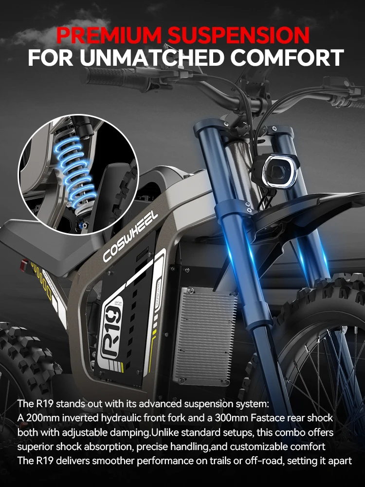 Coswheel R19 adult E-bike 3000W 72V40Ah battery commute Electric Bike,19-inch Tire E-Mountain bike