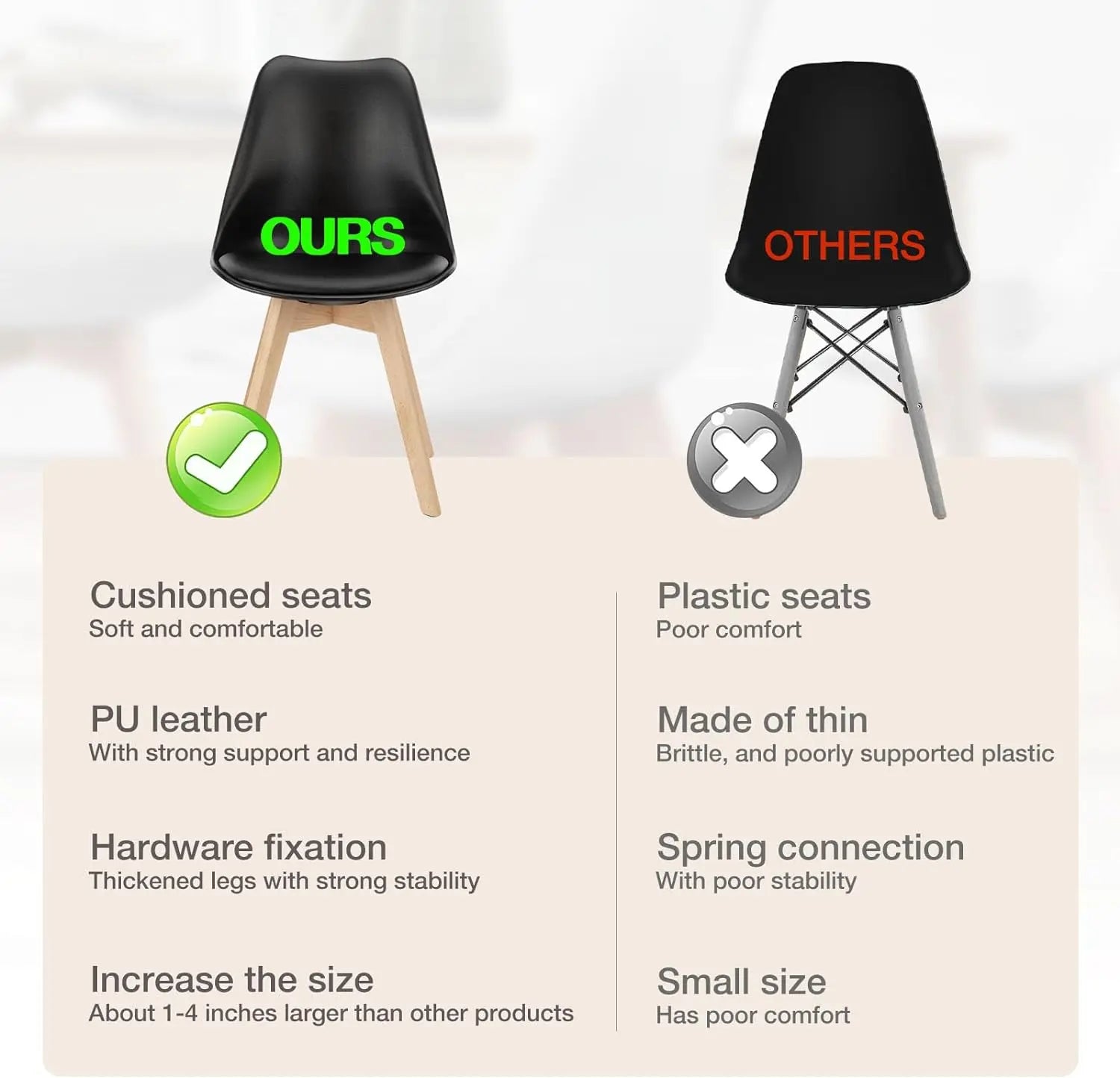 - 【 Premium Materials】Made of high-grade PU leather, our dining room chairs are wear-resistant, scratch-resistant, waterproof, and easy to maintain. Its skin-friendly and non-irritating properties ensure a healthy dining experience.