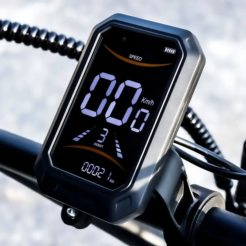With its 20*3" fat tires, this electric bike conquers various terrains with ease, from city streets to dirt paths.