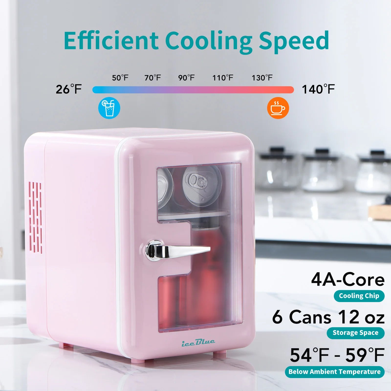 iceBlue Viewing Window Mini Fridge 4L/6Can Makeup Drink Dual-use Cooler Warmer Refrigerator for Camping Car Home Dormitory Gift