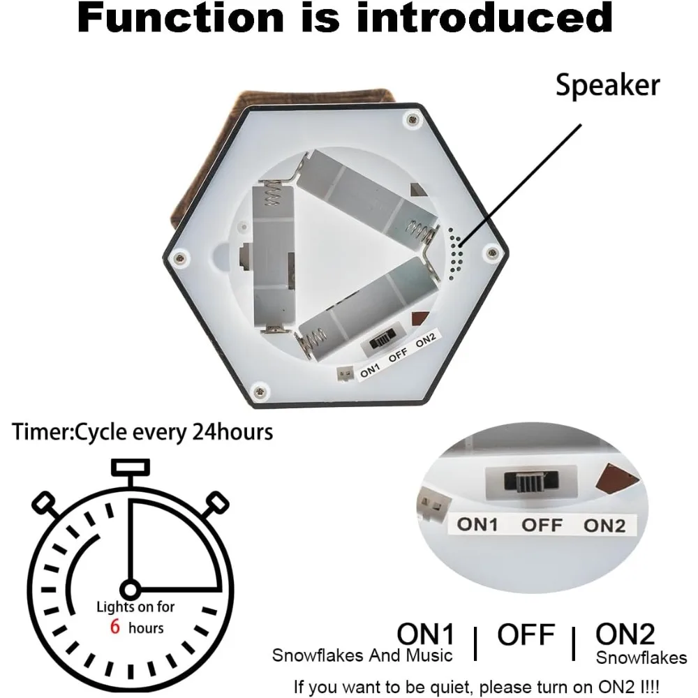 Certainly, here's a rewritten product description based on the provided HTML content: --- **About this Item** Discover a delightful 12-inch Christmas snow globe that brings a touch of festive charm to your holiday decorations. This winter wonderland features a captivating scene and a mesmerizing water glitter effect that spins to create a magical atmosphere. **Musical Snow Globe** This snow globe comes with a built-in music player that enchants your space with the sounds of the season. It plays a selection of eight classic Christmas tunes, including "Jingle Bells," "We Wish You A Merry Christmas," "Silent Night," and more. **Power Options** For convenience, this Christmas snow globe can be powered in two ways: with 3 AA batteries (not included) or by using a plug-in power supply. The design ensures there's no risk of leakage or fire hazard, providing a safe and enjoyable experience. **Timer Function** Embrace an eco-friendly approach to holiday lighting with the 6-hour on and 18-hour off timer feature. This timer setting conserves energy and protects the environment by automatically turning the lights on for 6 hours and off for the next 18, repeating this cycle every 24 hours. **Quality Assurance and Guarantee** Each snow globe undergoes rigorous testing before it leaves our factory, ensuring a high-quality product. It makes for a sweet home decoration on Christmas Day and is an ideal gift for your loved ones. --- This description maintains the original meaning while avoiding the use of special symbols and presenting the information in a clear, concise manner.