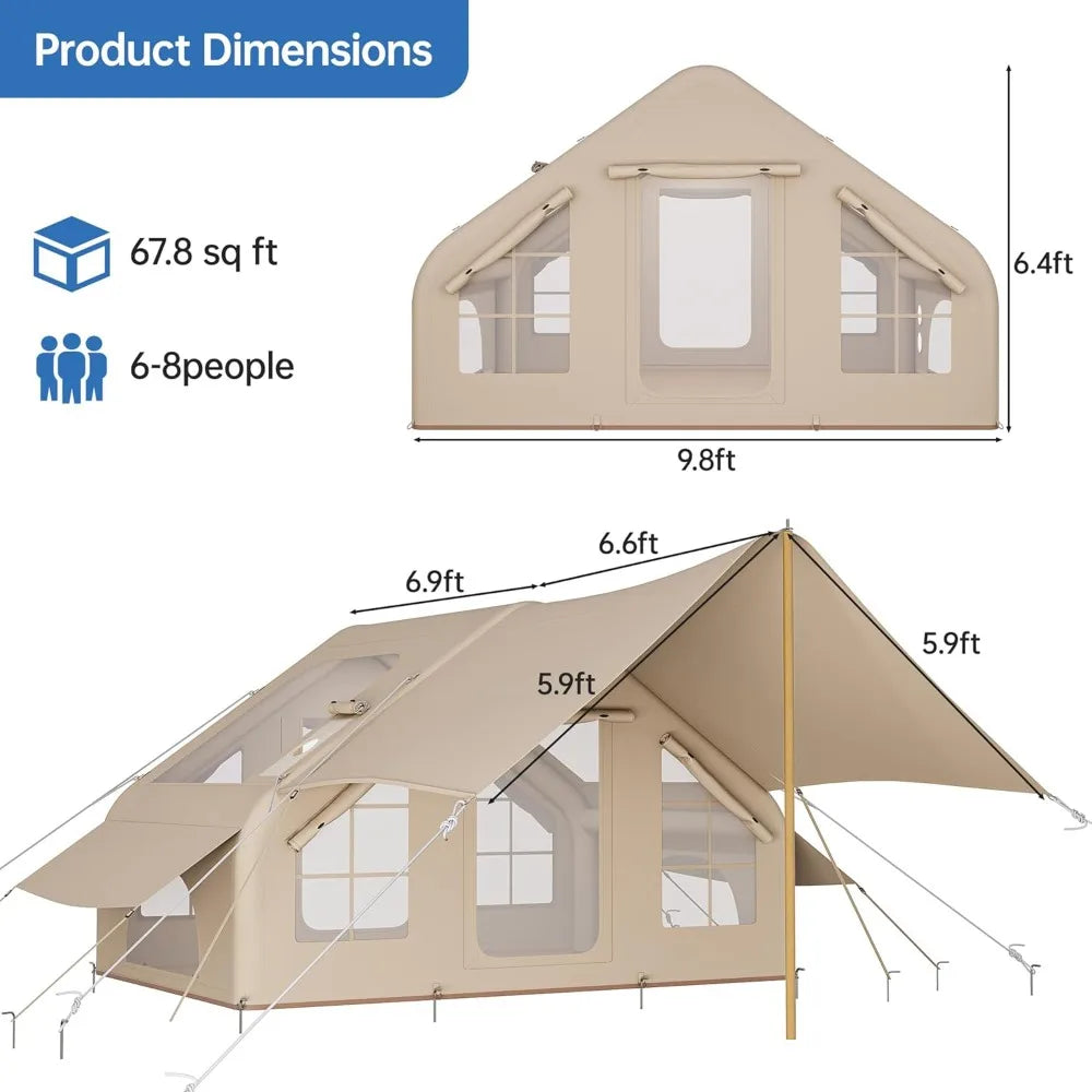 Inflatable Camping Tent with Pump & Awning,8-14 Person Air Tents for Camping Adult, Large Waterproof Oxford Family Glamping Tent