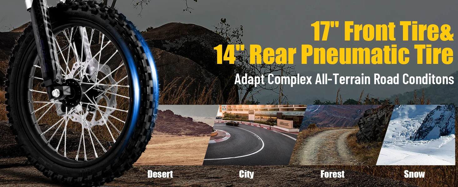 Front Tire: 70/100-17 Knobby Pneumatic