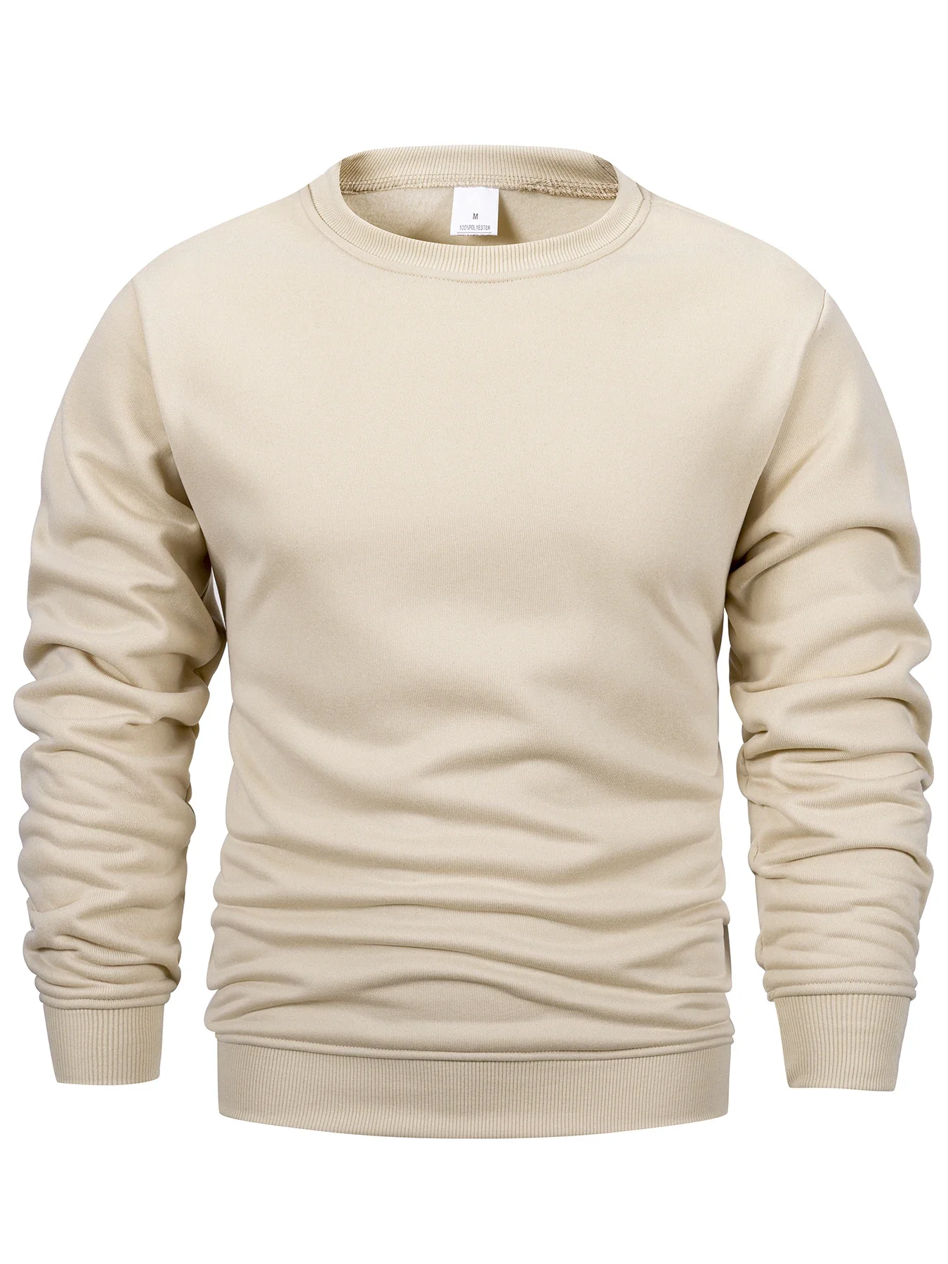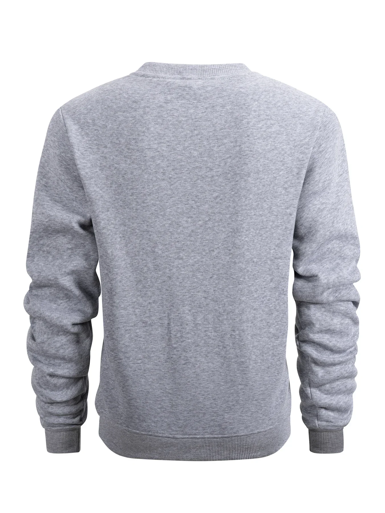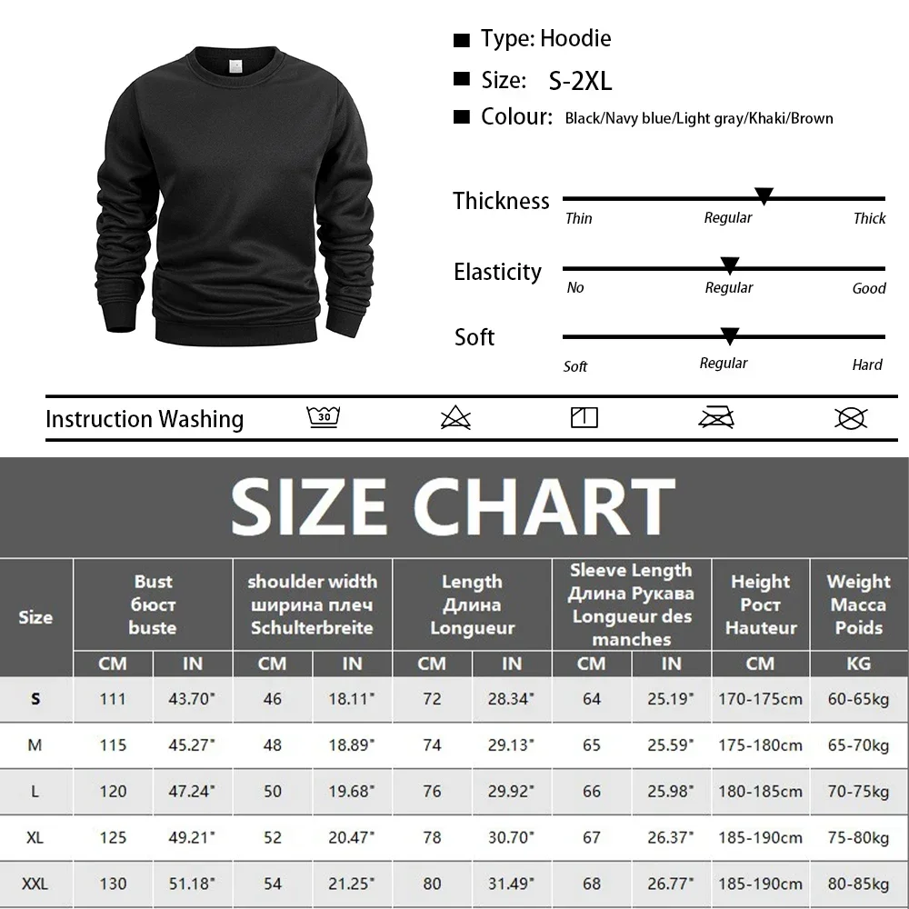 Men's Crew Neck Hoodies Autumn Winter Fleece Warm Casual Loose Pullover Solid Color Round Neck Sport Long Sleeved Sweatshirt