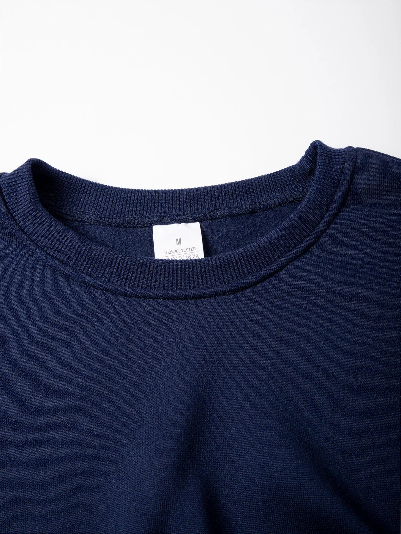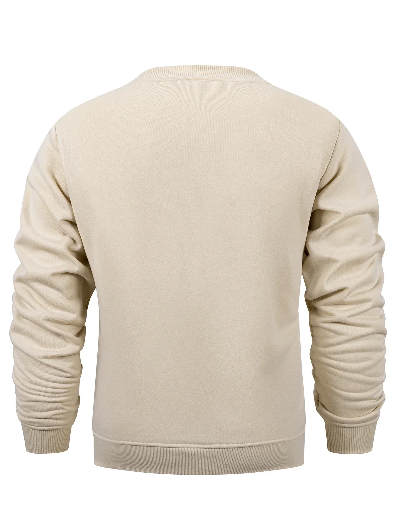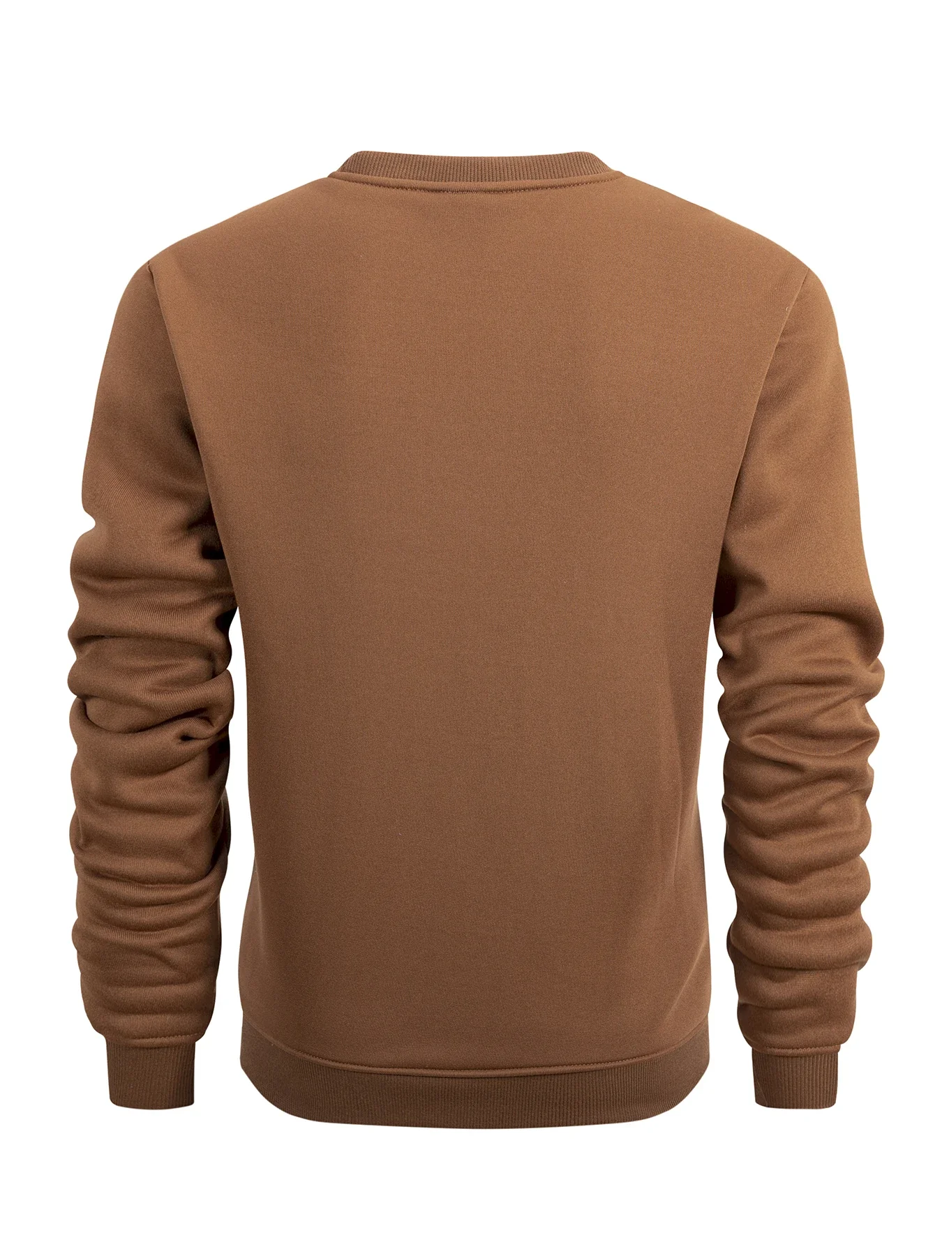 Men's Crew Neck Hoodies Autumn Winter Fleece Warm Casual Loose Pullover Solid Color Round Neck Sport Long Sleeved Sweatshirt