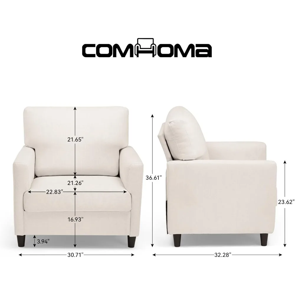 Mid-Century Accent Chair, Modern Upholstered Linen Fabric Chair with Thick Cushion & Solid Legs, Comfy Single Sofa Armchair