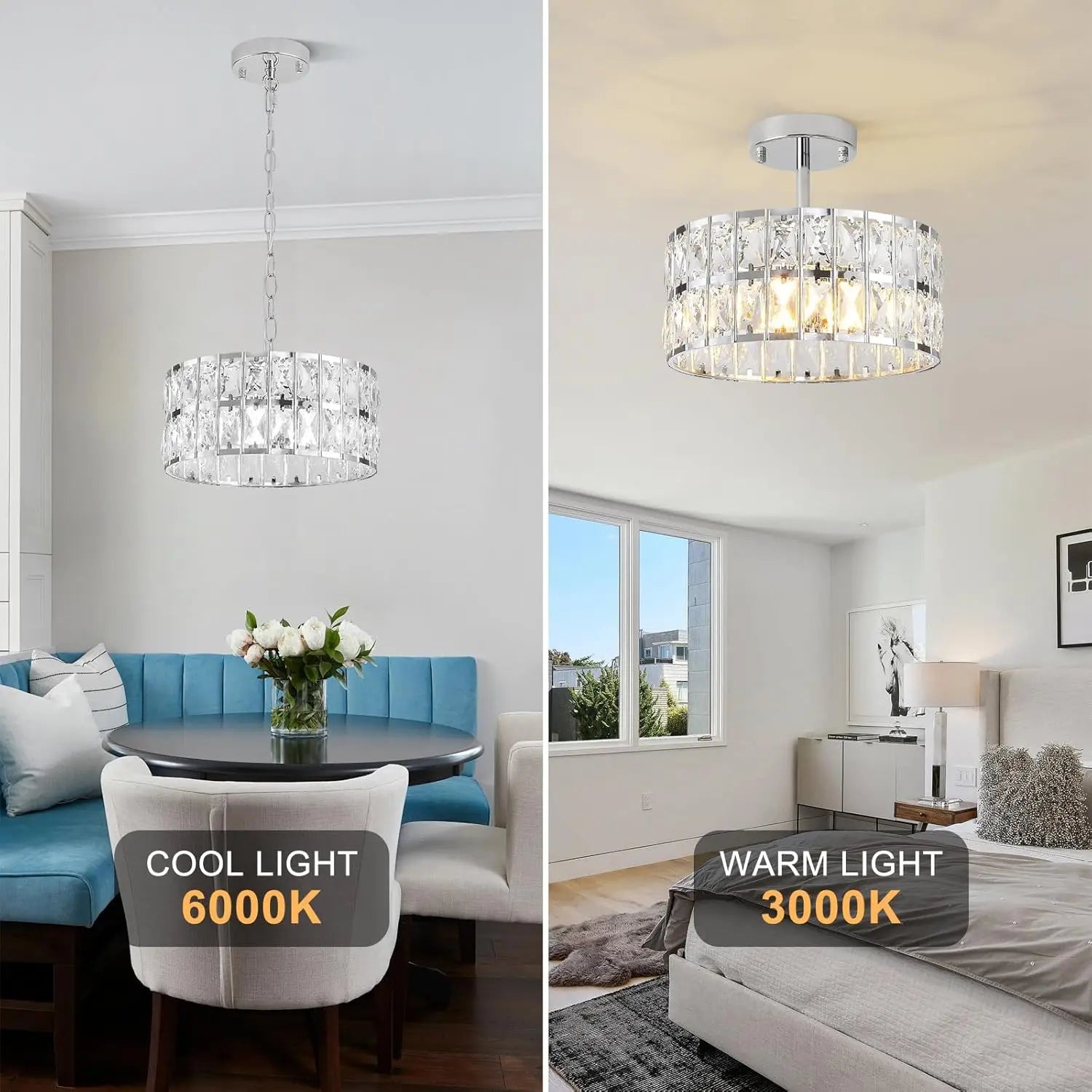 Sloped Ceiling Compatibility: Designed to adapt to various room structures, this small round crystal pendant light works seamlessly with sloped ceilings. No matter the angle, it adds a touch of elegance and illuminates your space beautifully.