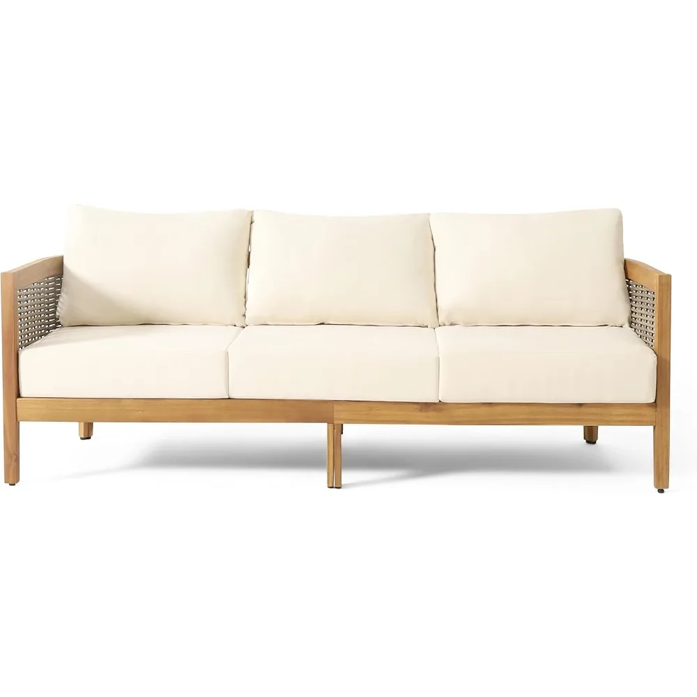 Outdoor Acacia Wood Wicker 3 Seater Sofa, Patio Furniture Conversation Set for Backyard