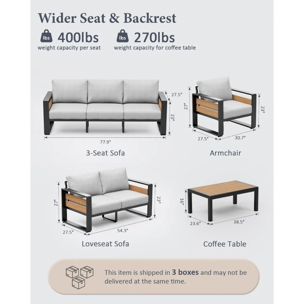 Outdoor Aluminum Patio Furniture - 1 Pcs 3-Seat, All-Weather Metal Modern Outside Sofa with Washable Thick Cushion for Garden