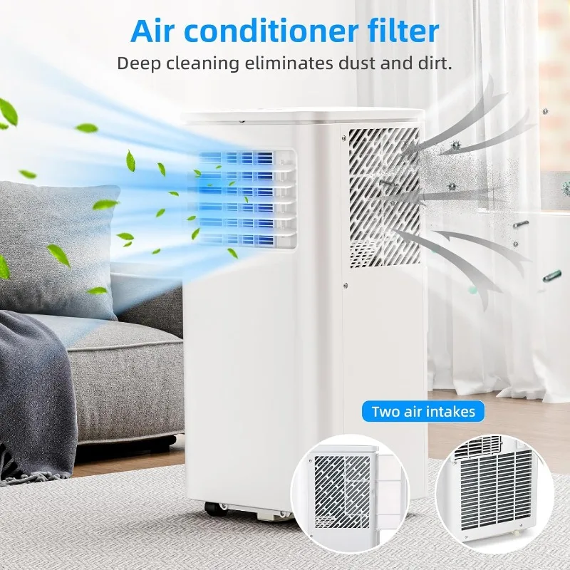 Portable Air Conditioner 8000 BTU, Remote Control, Fan Mode, Cools 350sq. ft, 24 Hour Timer, Quiet Operation,Window, 2 Fan Speed