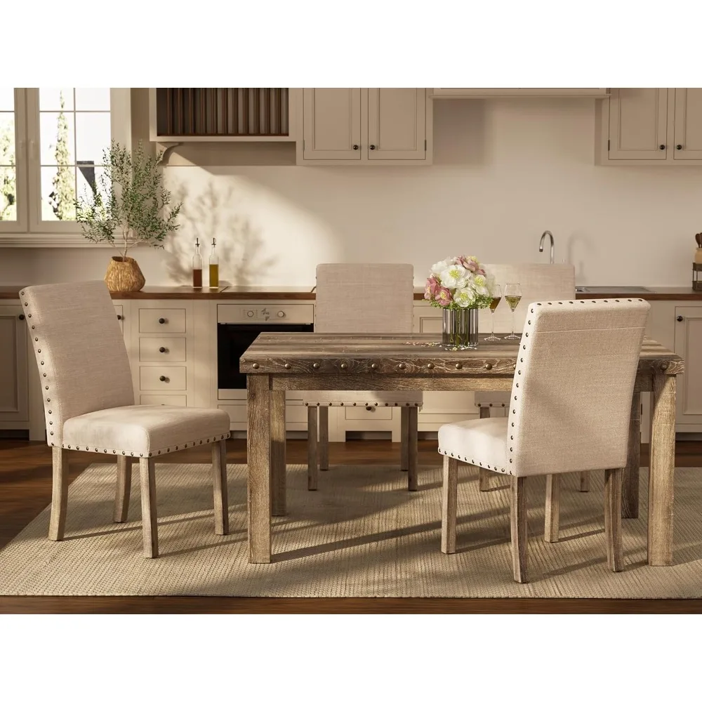 - 【Farmhouse Character】Distressed wood-grain tabletop and chair legs with industrial rivet accents create a rustic focal point for your kitchen & dining room chairs set.The dining set combines practicality with a refined, exuding an impressive classic farmhouse charm