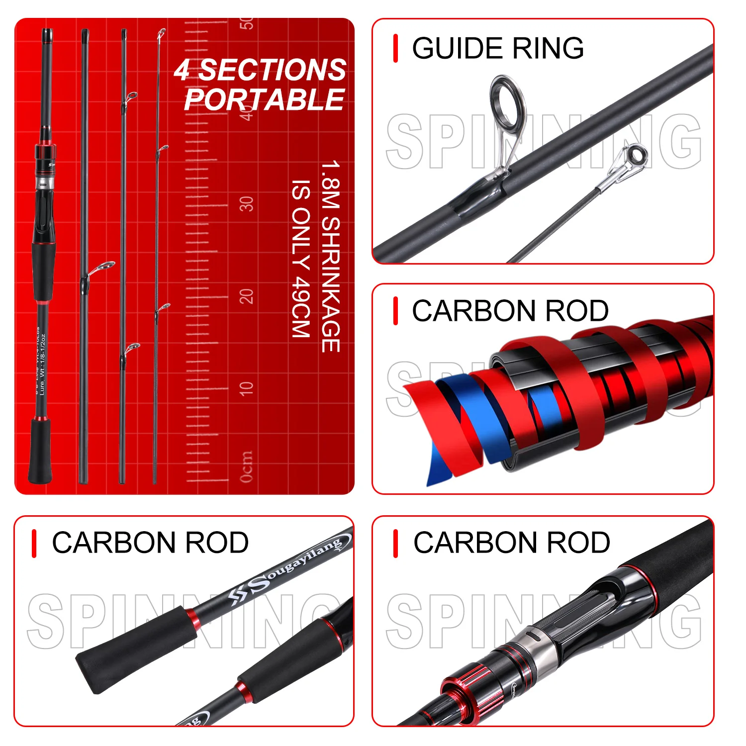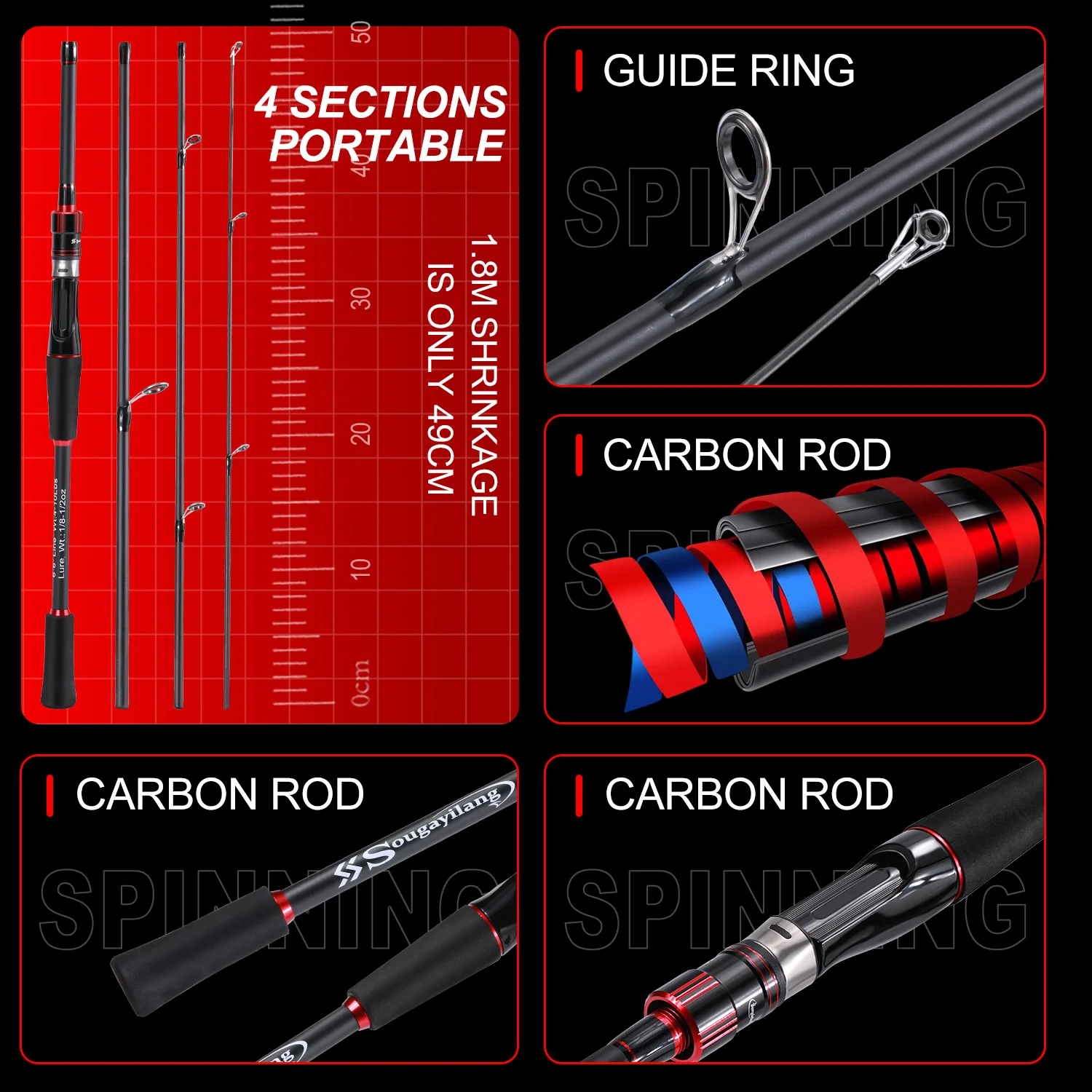 5.Portable closed length design for conveniently carrying around.Super large fishing weight.