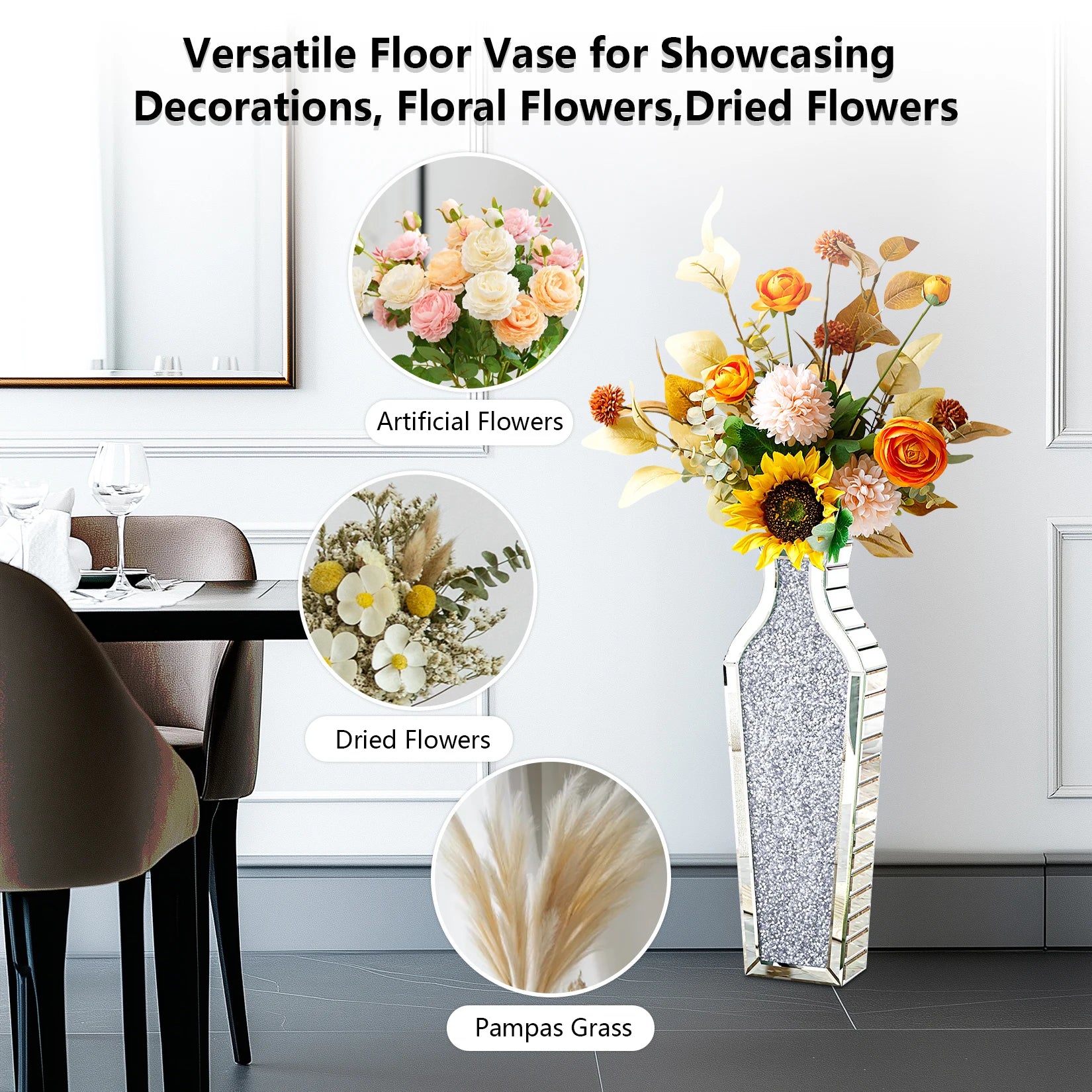 Tall Flower Vase Crushed Diamond Mirrored Floor Home Deco Vase