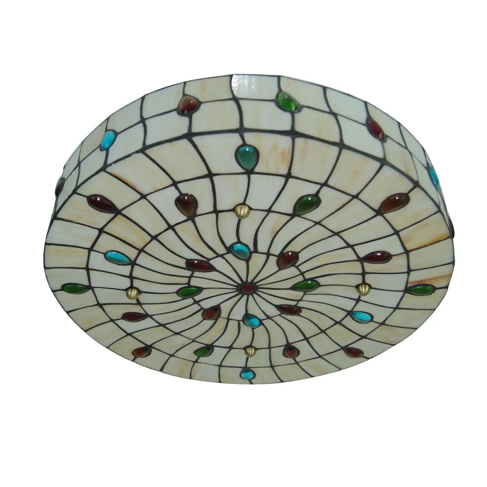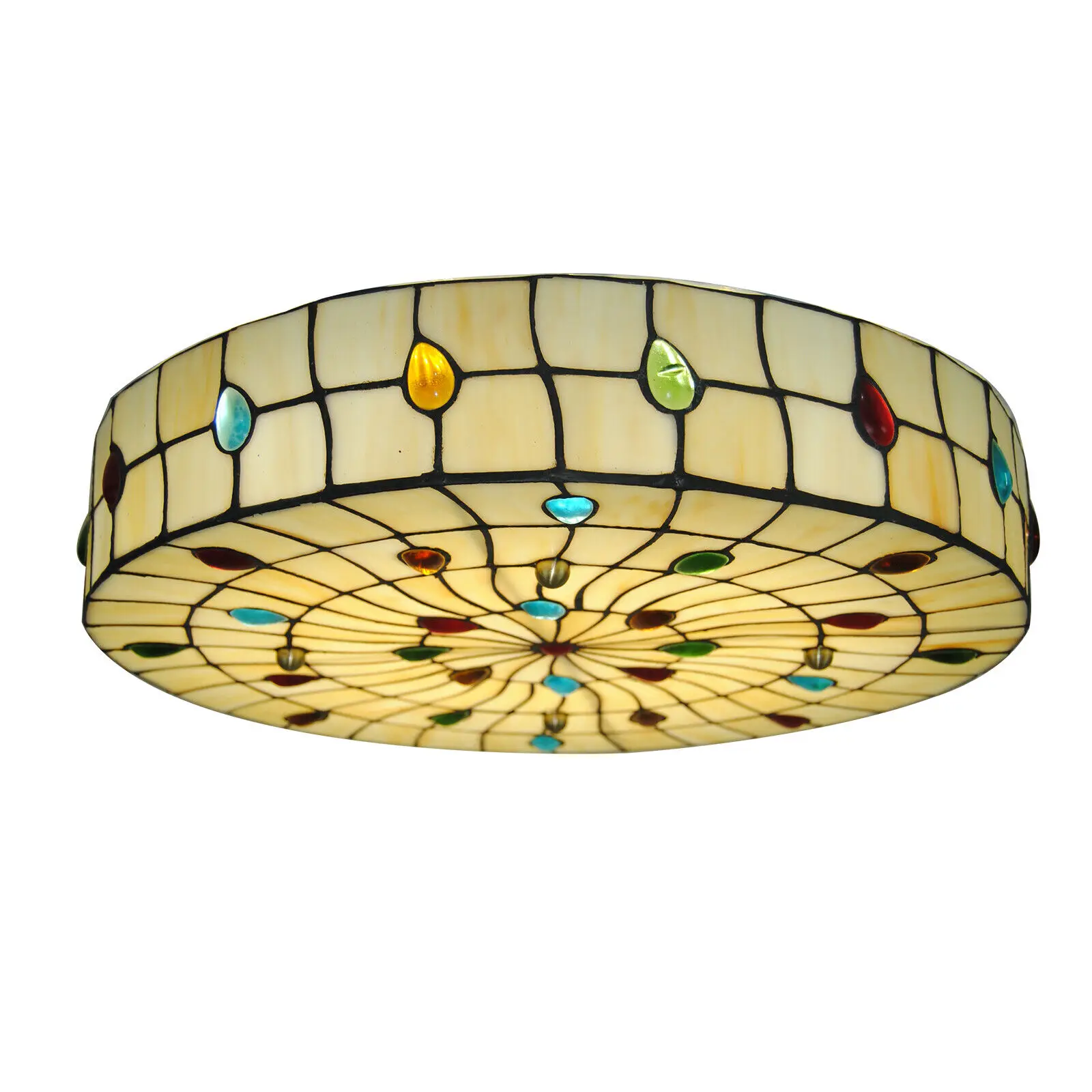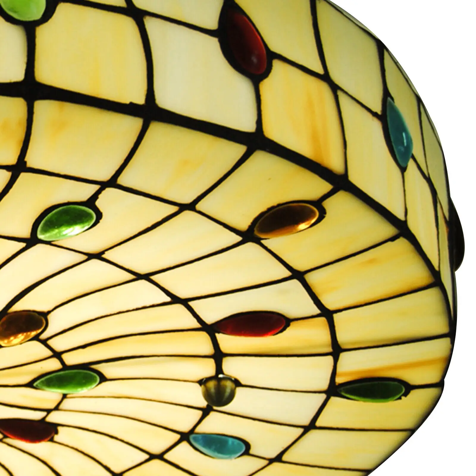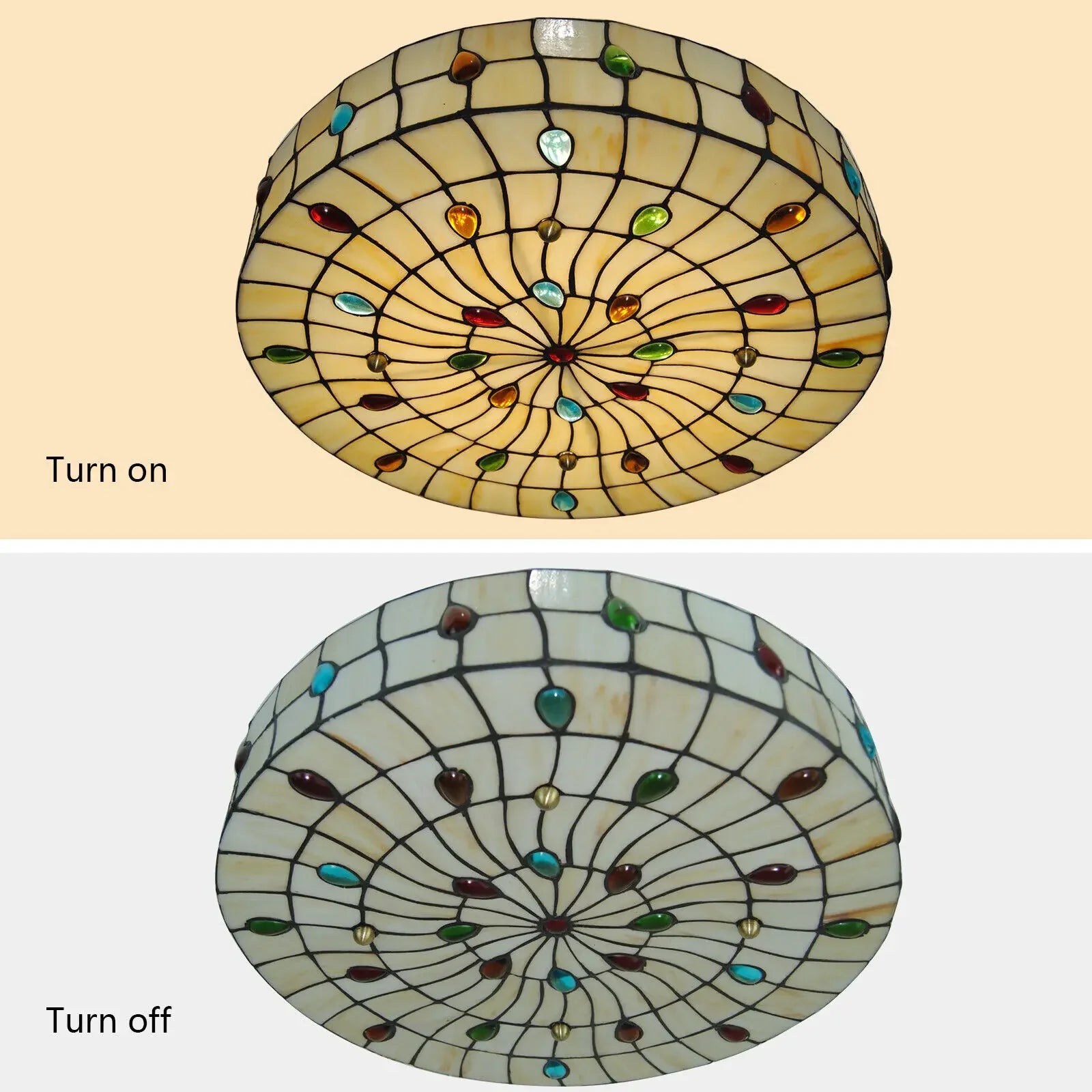 Tiffany Style Semi Flush Ceiling Lamp 3 Bulb Capacity E26 Socket Handmade Stained Glass Shade for Home Decoration Lighting