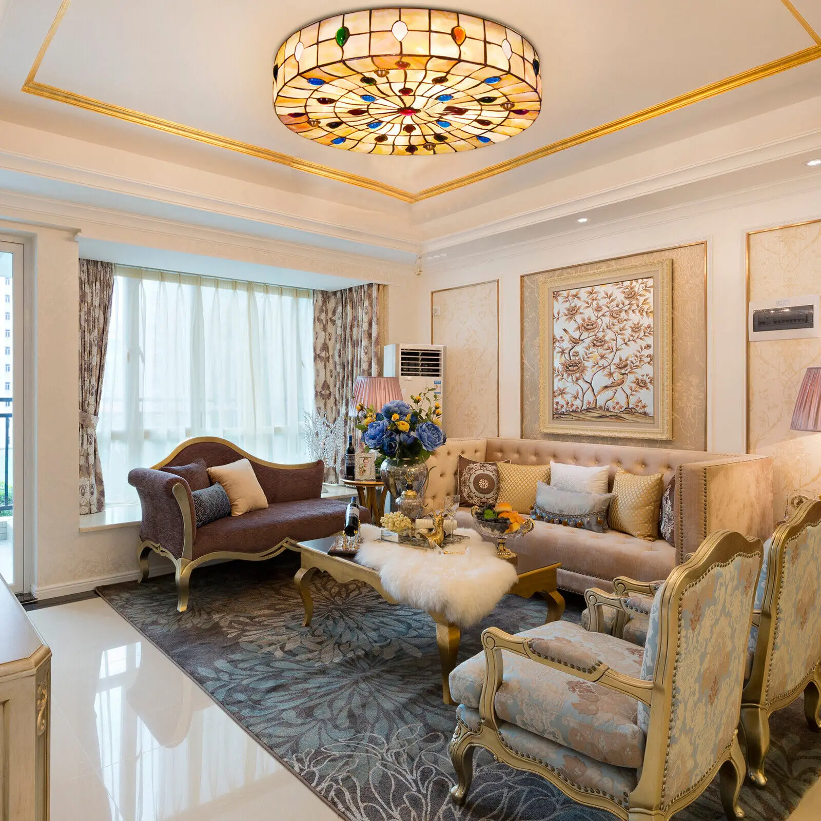 【Specification】Style: Modern Tiffany flush mount ceiling light, 18x18x3 inch/ 45x45x8 cm/ L*W*H. Bulbs: E26 bulb socket, Requires (3pcs) Incandescent or LED bulbs( Not included), Voltage 110-220V, Wall control.
