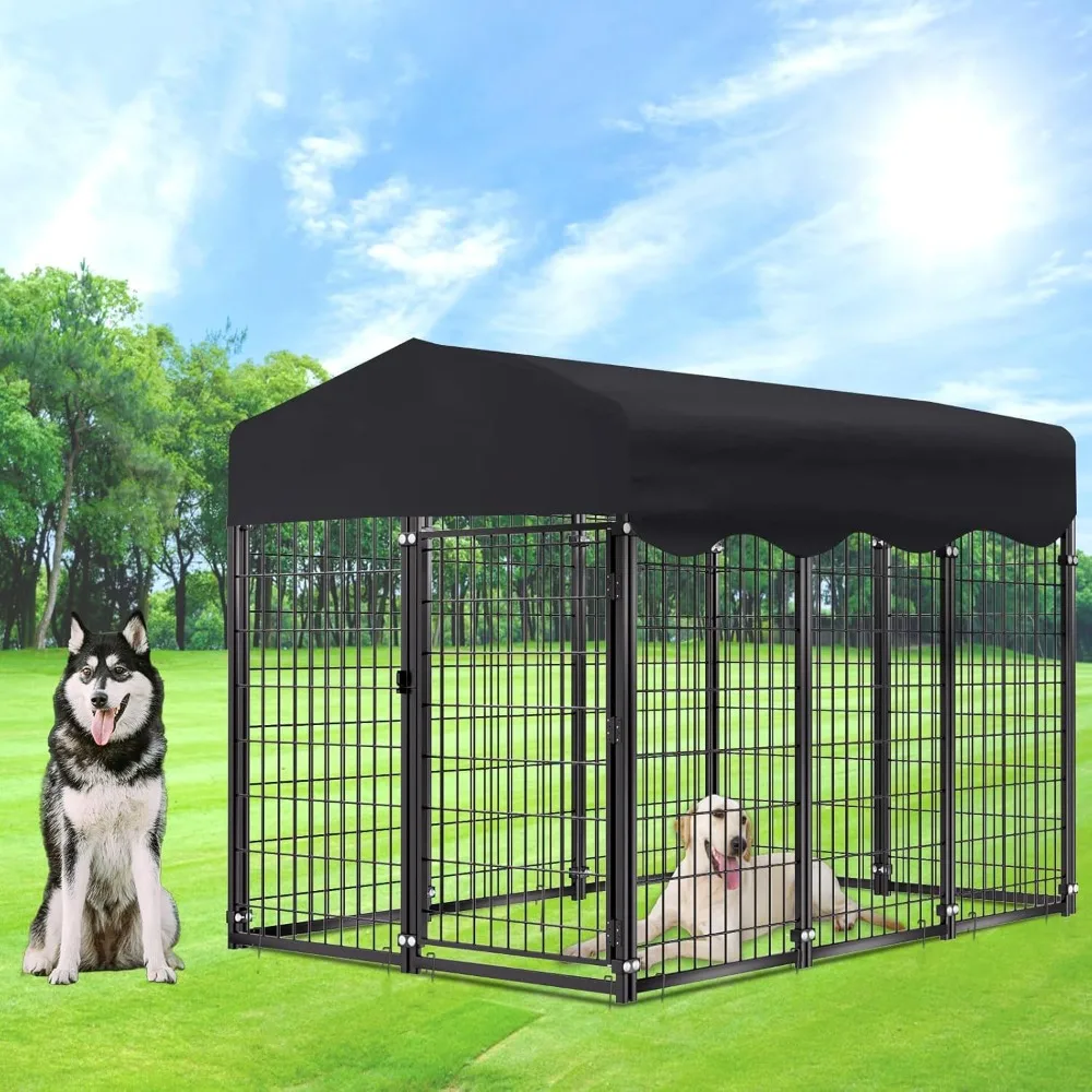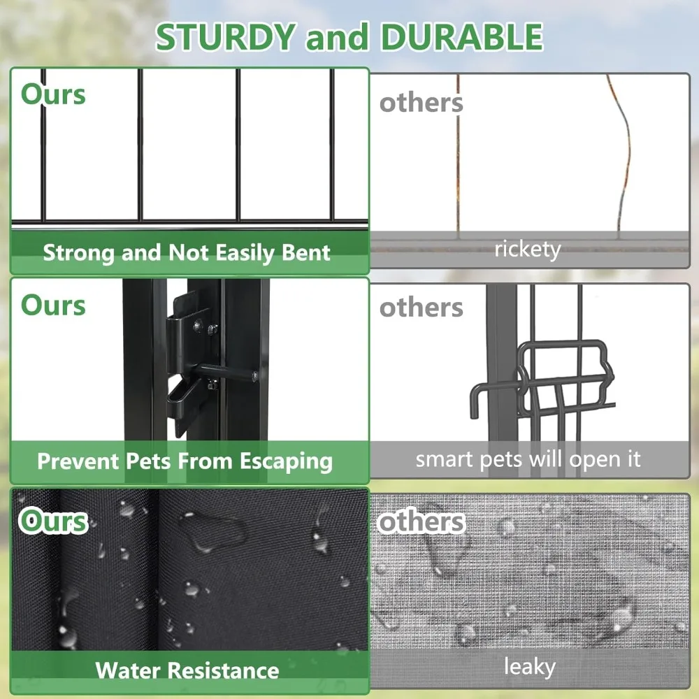 - 【Sturdy & Stable Construction】Our outdoor dog kennel with roof features heavy-duty metal framing with a double powder-coated finish, built to withstand heat, cold, rain, and strong winds while resisting rust and chewing. The upgraded ground nails anchor the dog run securely, preventing tipping or escapes-keeping your pet safe and your home intact