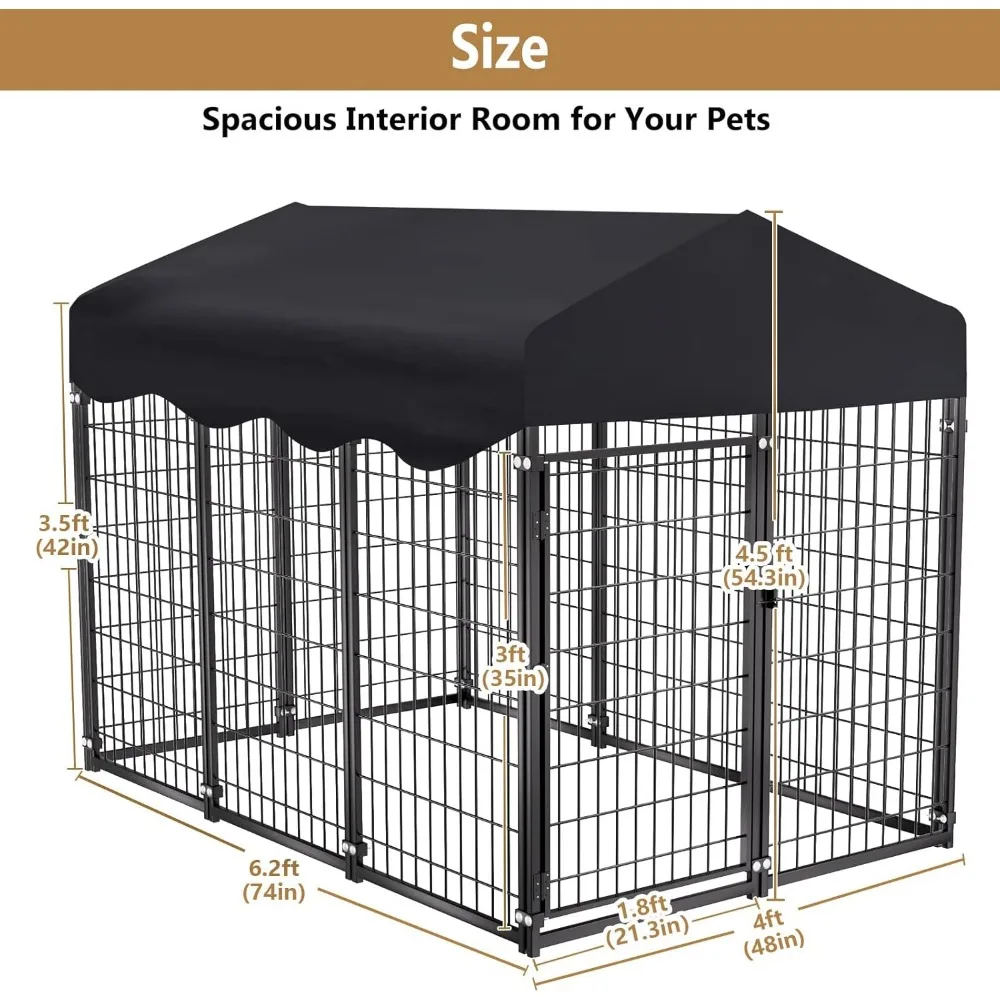 - 【Spacious Interior for Comfort】This dog kennel for large dogs provides ample room for pets to stand, stretch, and relax. At 4.5ft tall (with roof) and 6.2ft long, it accommodates growing puppies and large breeds alike.You can add a dog house inside for extra shelter, or use the space to separate pets during training. Great for potty training, bunny protection, or managing multi-pet households