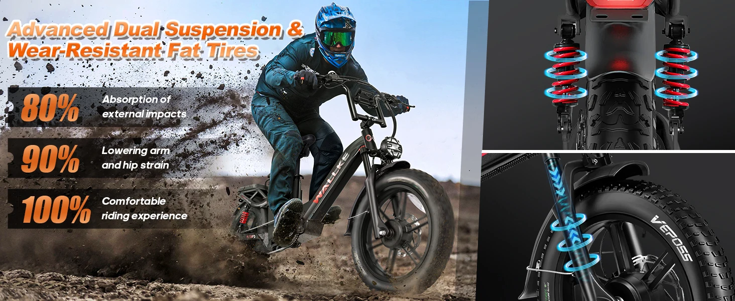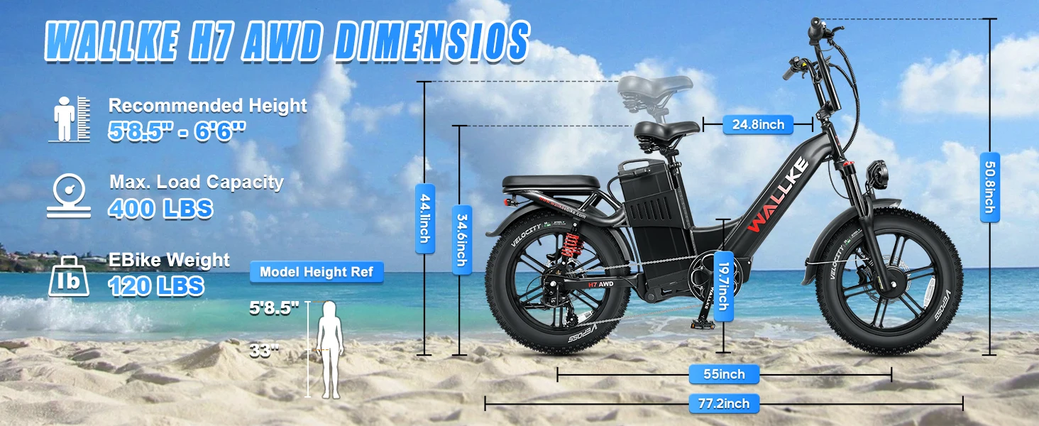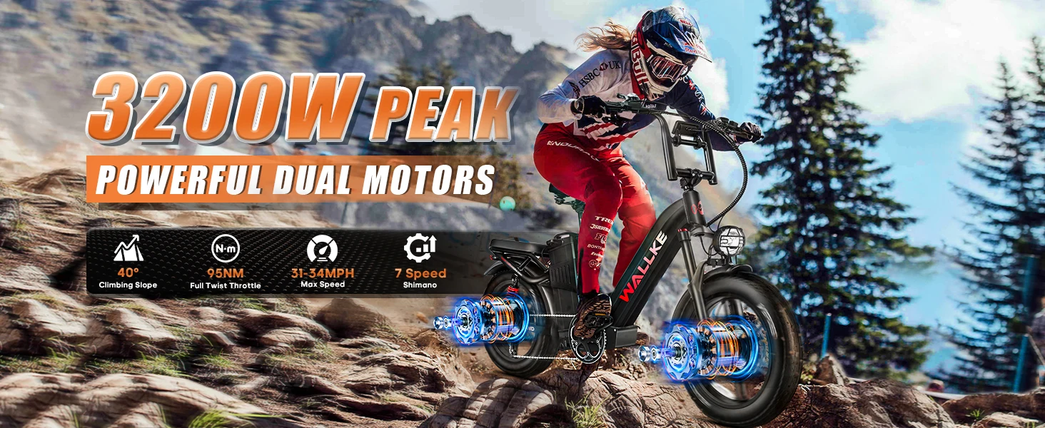 W Wallke H7 AWD 3200W Dual Motor Electric Bike for Adult 48V 60Ah Long Range 31MPH Fast Ebike 20" Fat Tire E-bike UL2849
