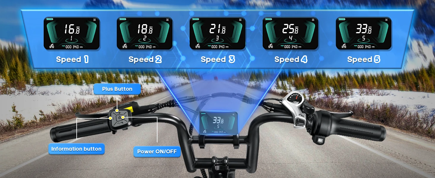 【𝟕-𝐒𝐩𝐞𝐞𝐝 𝐒𝐲𝐬𝐭𝐞𝐦】This professional ebike with 7-speed gear shifter allows you to change the gears for adapting to different terrains, enhancing both riding comfort and efficiency. This all-terrain e-bike that can be used for off-road snow sand road etc.