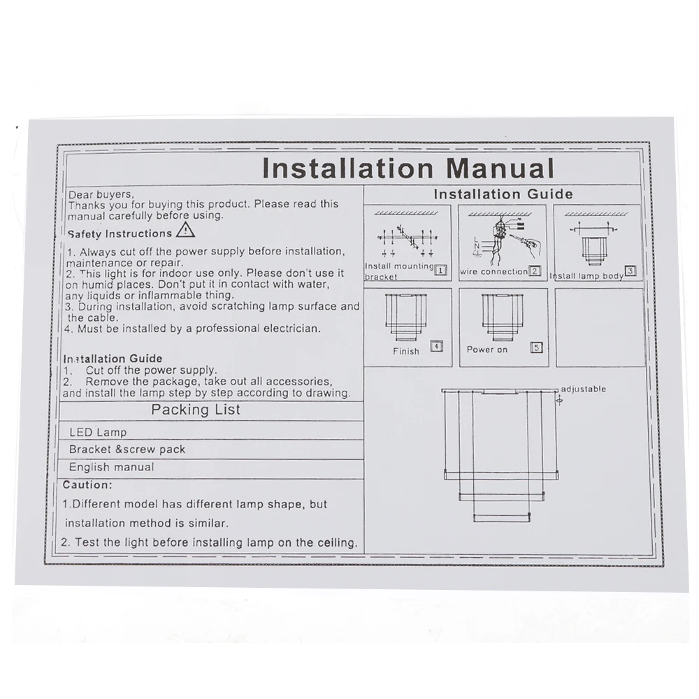2. Please do not install the light next to the air conditioner or heater, to avoid rusting due to moisture, which will affect the service life of the light. For a safe and secure installation, please ensure that the electrical box to which this fixture will be mounted is properly attached to a structural member of the building.