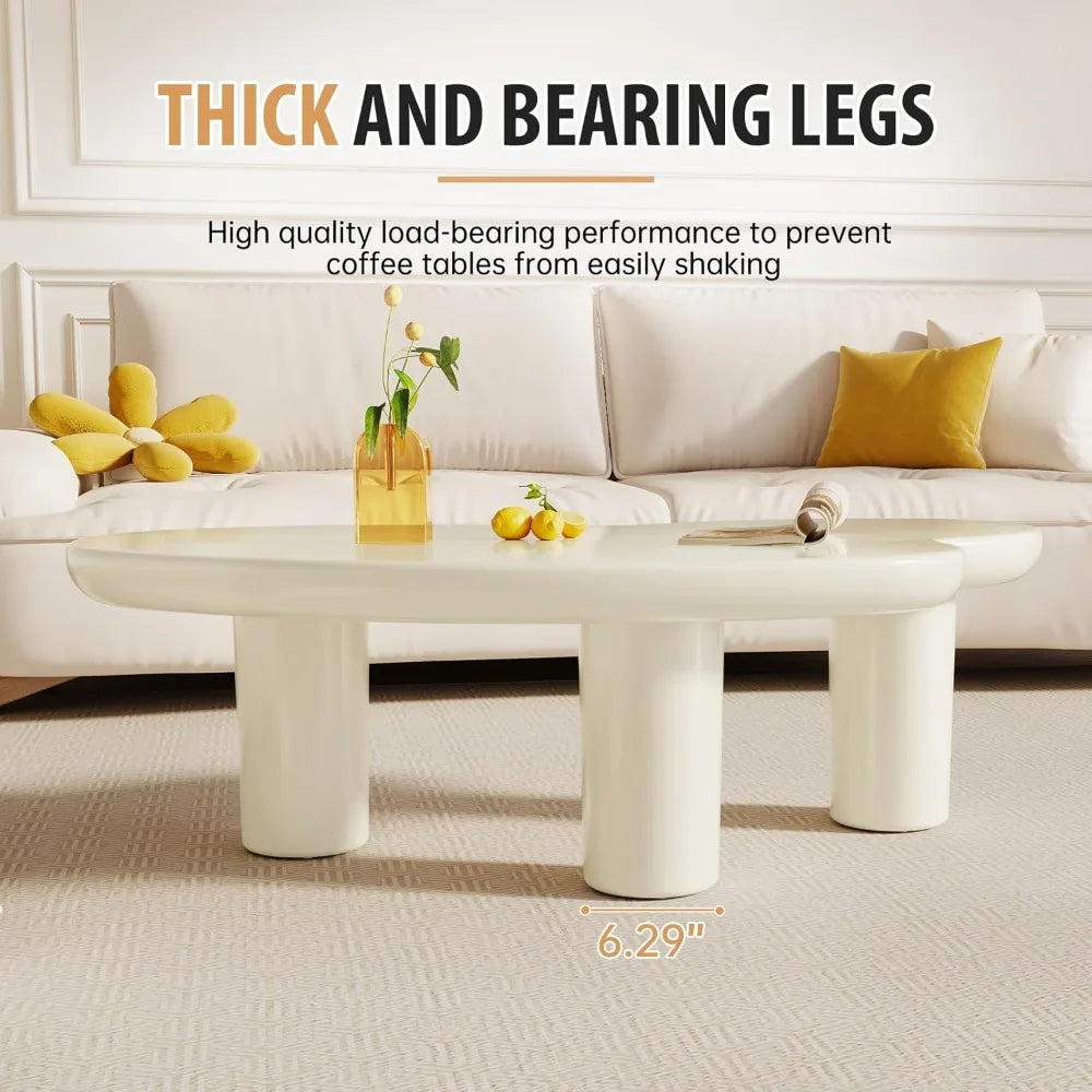 White Cloud Coffee Table, Vintage Coffee Table with 3 Support Legs, Smooth Surface and Round Edge