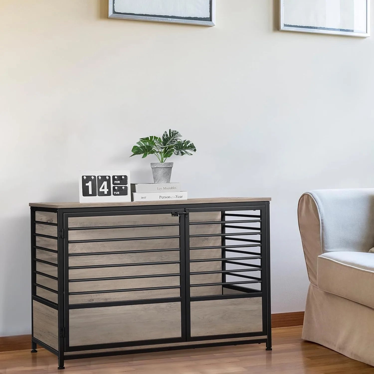 Wooden Heavy Duty Dog Cage Side End Table, Indoor Dog Kennel, Decorative Style Steel Tube Structure Pet Crate House for Dog